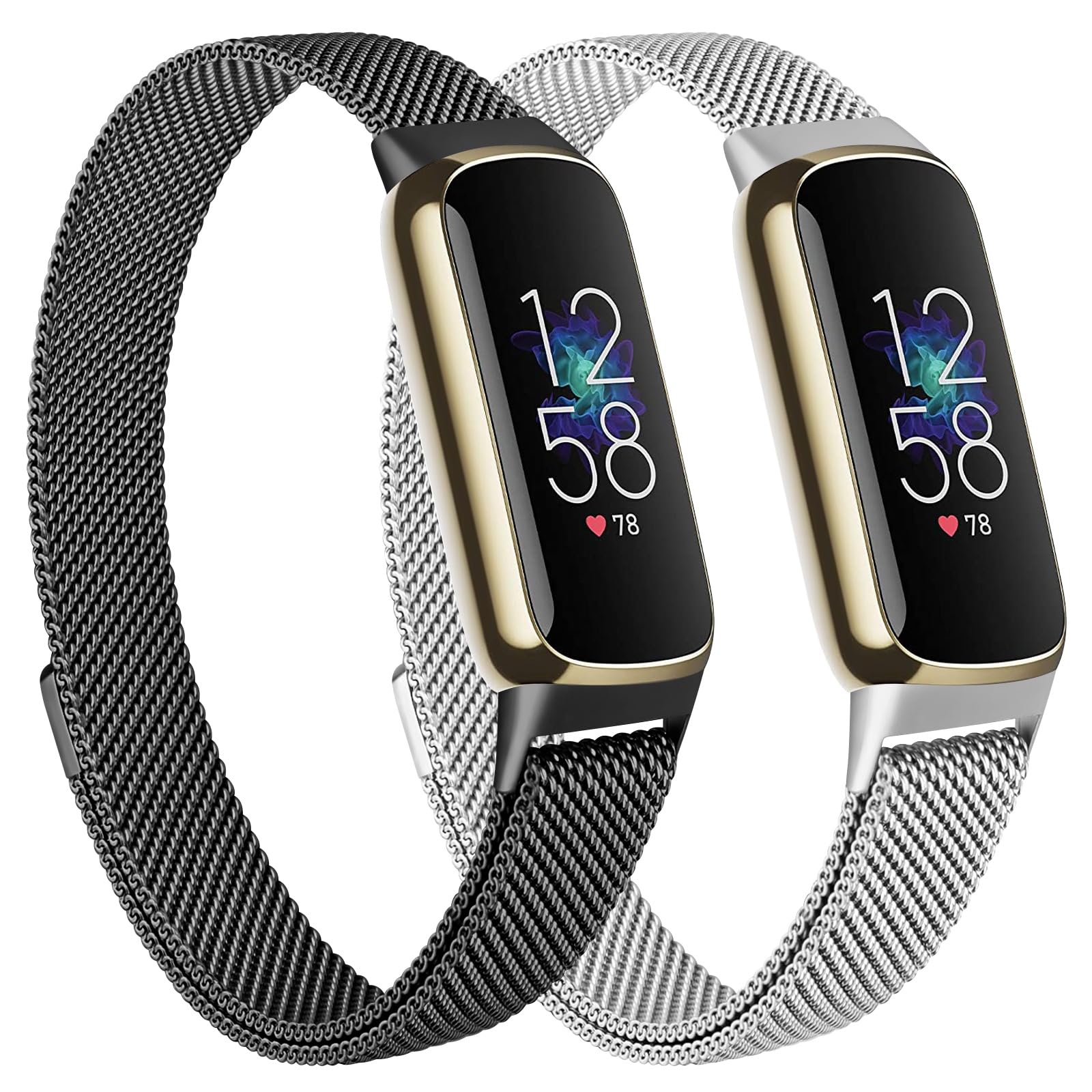 Meliya Metal Band Compatible with Fitbit Luxe Bands Women Men, 2 Pack Stainless Steel Mesh Loop Adjustable Wristband Replacement Strap for Fitbit Luxe Fitness Tracker (Black+Silver)