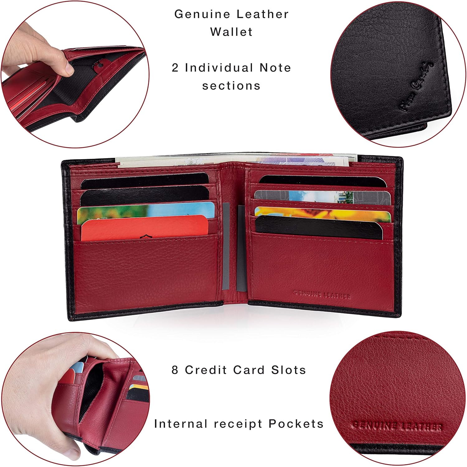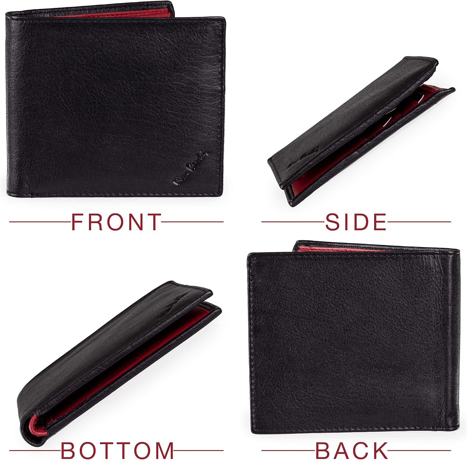 Mens Genuine Leather Wallet - Nappa by Pierre Cardin | RFID Blocking | Soft, Smooth, Durable & Crease Proof Bi-Fold Gents Wallet (Black/Red Inner)