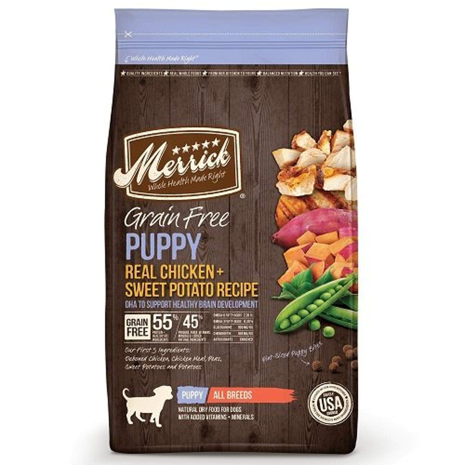 The Best Dog Ever deserves the Best Food Ever. That’s why Merrick’s grain-free recipes provide only the best to your best friend in quality, nutrition and taste. Merrick grain-free recipes start with real deboned meat, fish or poultry as the #1 ingredient for a high protein, nutritious grain-free meal, along with farm-fresh fruits and vegetables like sweet potatoes, blueberries, peas and more.
