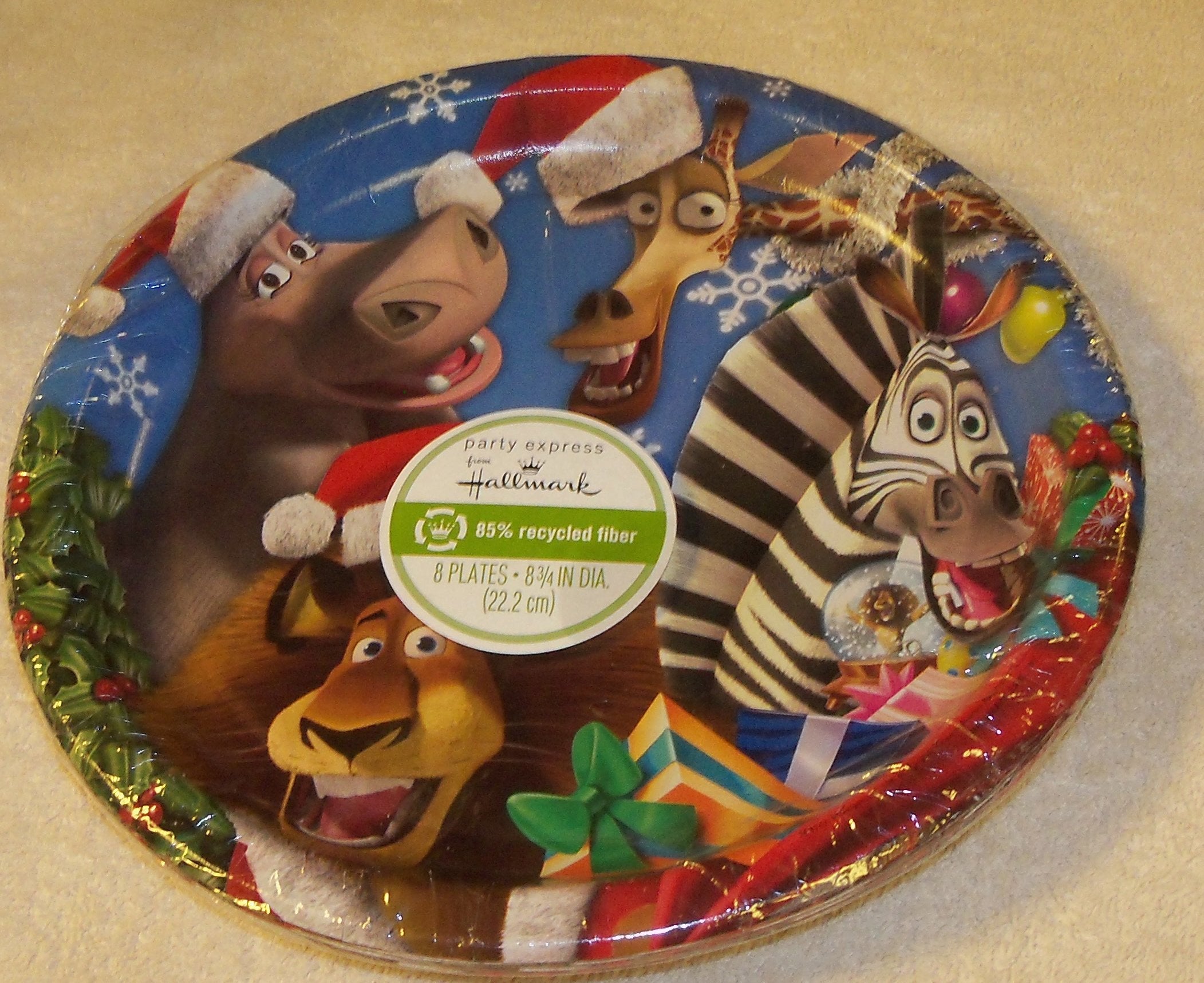 Merry Madagascar Package of 8 Christmas Party Plates 8 Plates 8-3/4 IN DIA. party express from Hallmark copyright 2009