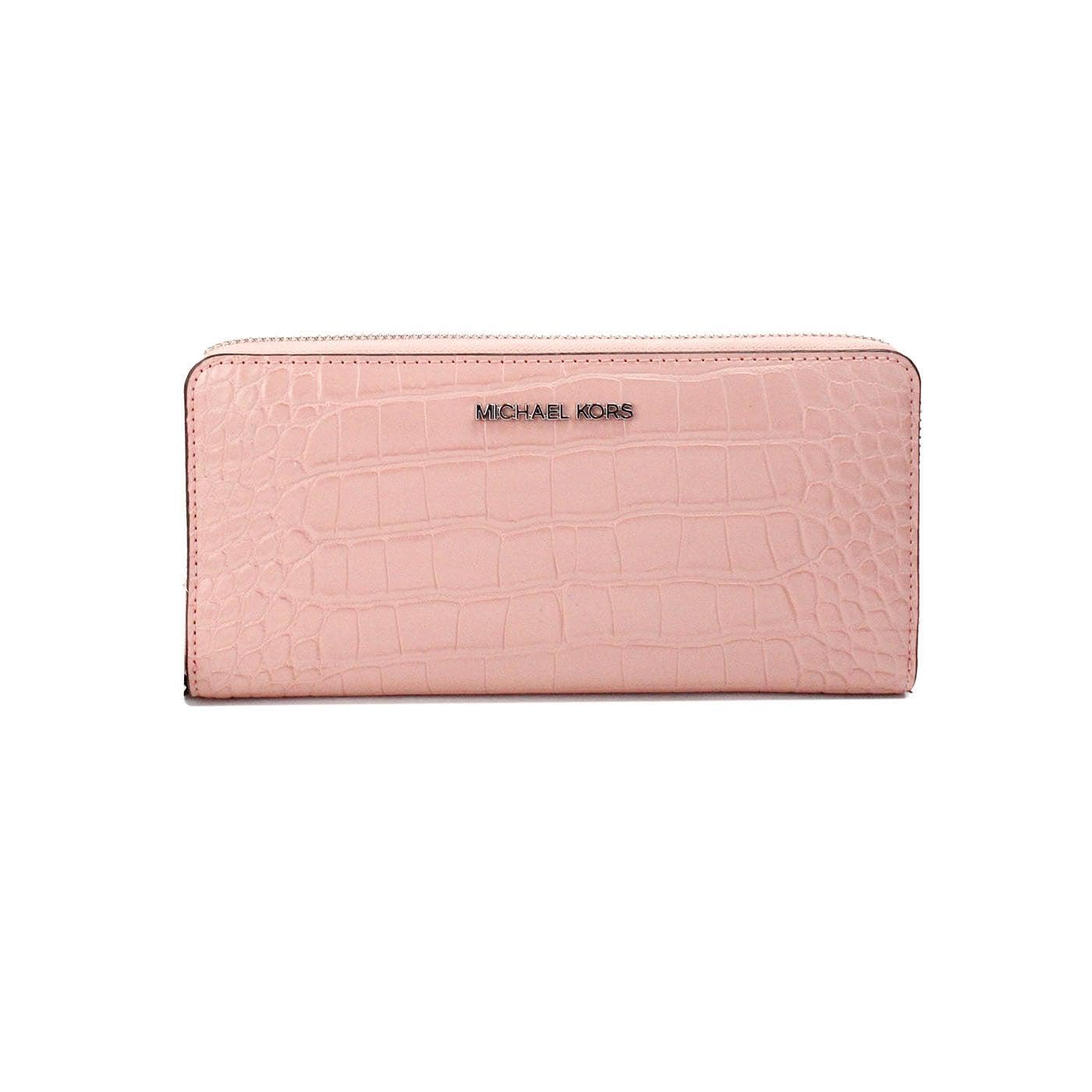 Style: Michael Kors Jet Set Large Primrose Animal Print Continental Wrist Wallet Material: Embossed Leather Features: Detachable Wrist Strap, 16 Card Slots, Center Zip Compartment, Zip Around Closure Measures: 21.59 cm L x 10.16 cm H
