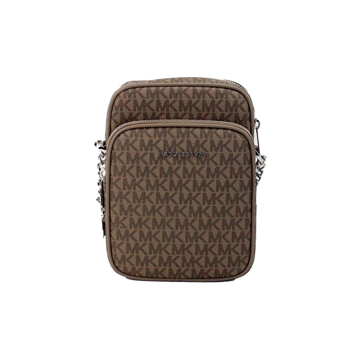 Style: Michael Kors Jet Set Travel Medium North South Chain Crossbody Bag (Dusk) Material: Signature PVC with Crossgrain Leather Trim Features: Adjustable Chain Accented Crossbody Strap, Inner Slip Pocket, 3 Inner Card Slots, Outer Slip Pocket Measures: 15.24 cm W x 20.32 cm H x 7.62 cm D