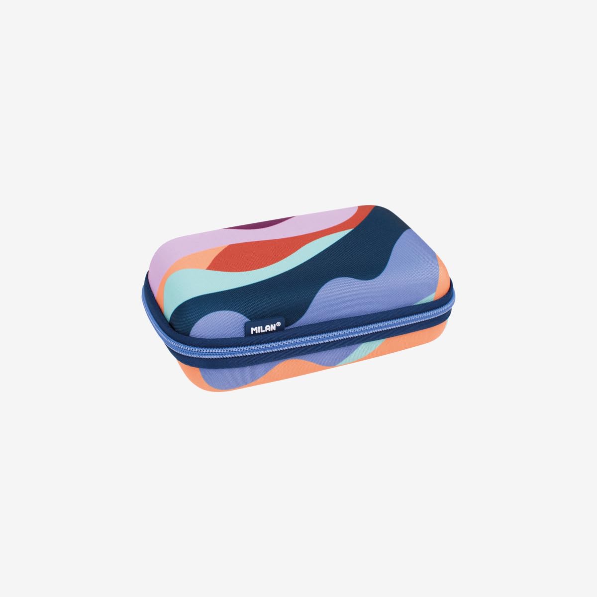 Semi-rigid kit 2 cases with content. The Fun Series, Multicolor. A collection inspired by the fun and enjoyment of the experience during the creative process. With a unique color palette, the different shapes of a collage become the print of this collection. Inner mesh pocket and velvety interior, to protect the contents from possible scratches. Contents: 1 x 4024 eraser, 1 x AFILA sharpener, 1 x HB graphite pencil, 3 x CAPSULE pens (black, red and green), 1 x 15 cm triangular ruler and 6 x metallic black wood pencils. Woven composition: E.V.A. outer and polyester, polyester inner lining. Dimensions: 21.5 x 13.5 x 6.5 cm.