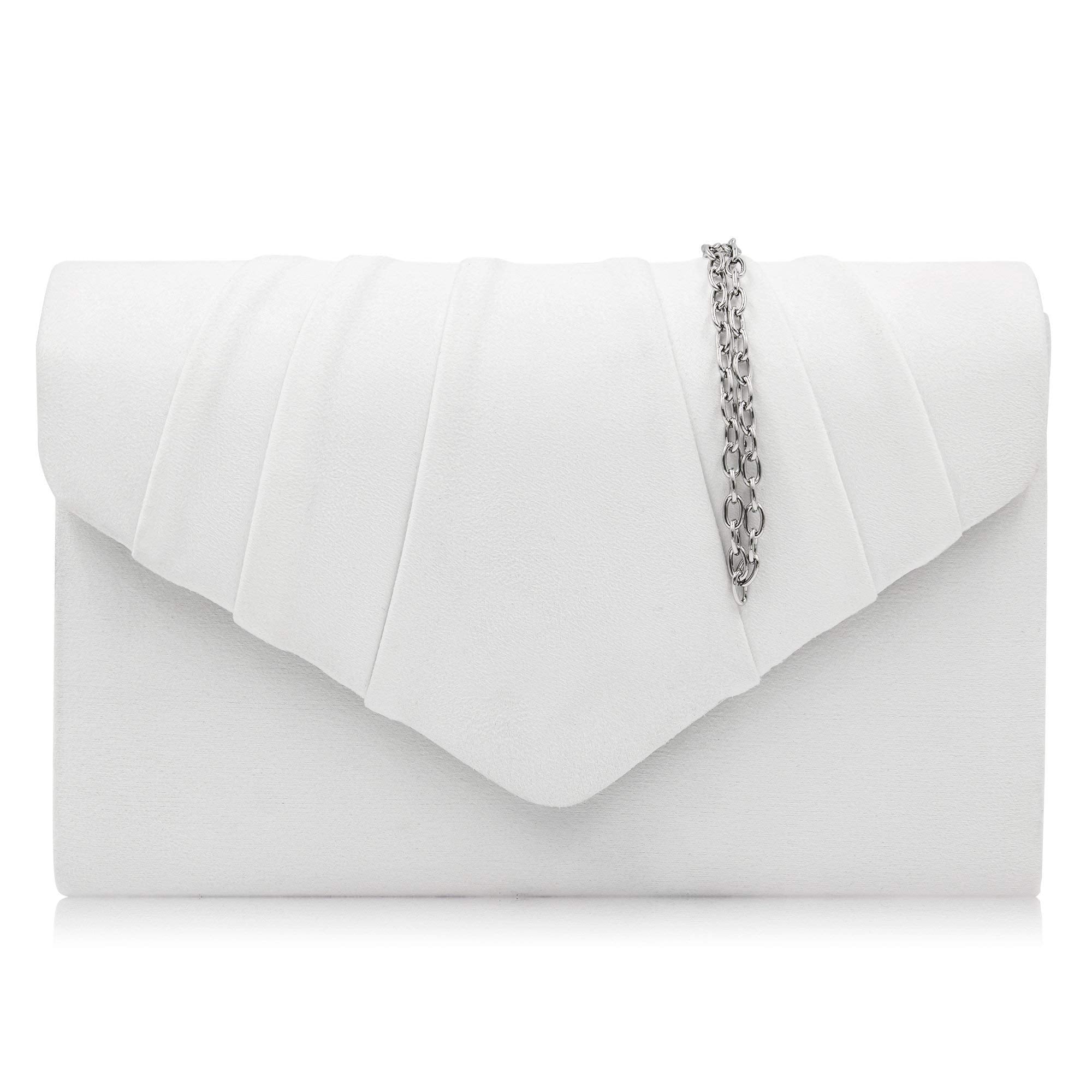 Milisente Women Clutches Velvet Pleated Evening Bag Evenlope Clutch Purse (White)