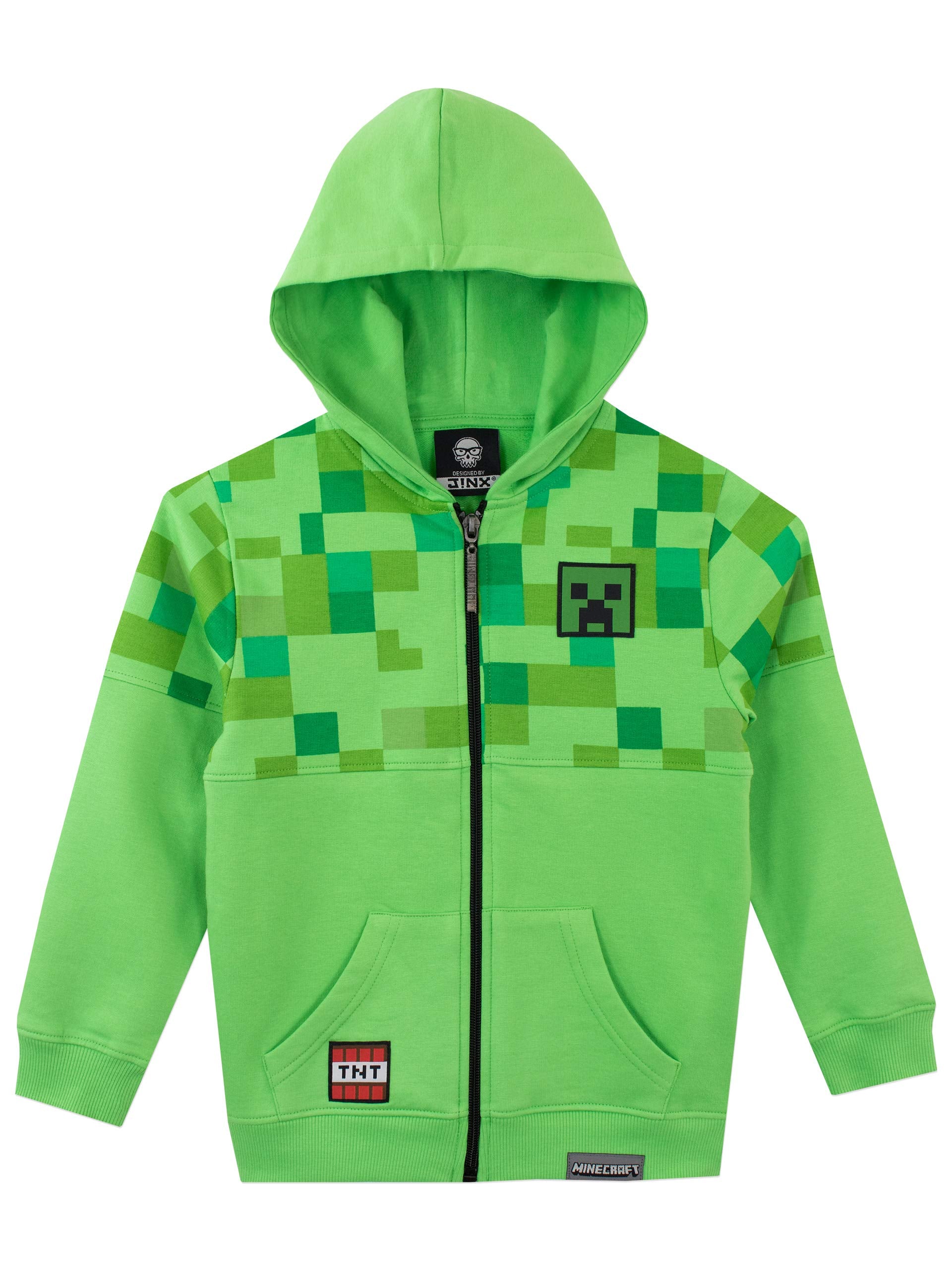 Introducing our Boys Minecraft Hoodie - the ultimate blend of comfort and style for your little adventurer and the perfect addition to your collection of Minecraft gifts for boys! Crafted entirely from 100% cosy cotton, this creeper boys hoodie ensures your child stays warm during every pixelated journey. Equipped with a snug hood, it's perfect for keeping them cosy on cooler days, whether they're exploring the virtual landscapes of Minecraft or enjoying outdoor play. And guess what? The boys' zip-up hoodie features badges that showcase the Creeper's face and TNT, instantly connecting with their love for the game! But the magic doesn't stop there. With super convenient pockets, they can easily stash their treasures - be it small toys, more Minecraft merchandise, or even a small notebook for sketching their in-game discoveries! Imagine the smiles as they put on their favourite Minecraft hoody for kids, ready to conquer both digital and real-world adventures. With the assurance of 100% cotton, the charm of badges, and the practicality of pockets, these Minecraft clothes become their go-to outfit for both comfort and style. Level up their wardrobe with this Boys' Minecraft Hoodie - a prime example of Minecraft gifts for boys! Order now and let their Minecraft journey continue with warmth, comfort, and a touch of gaming flair.