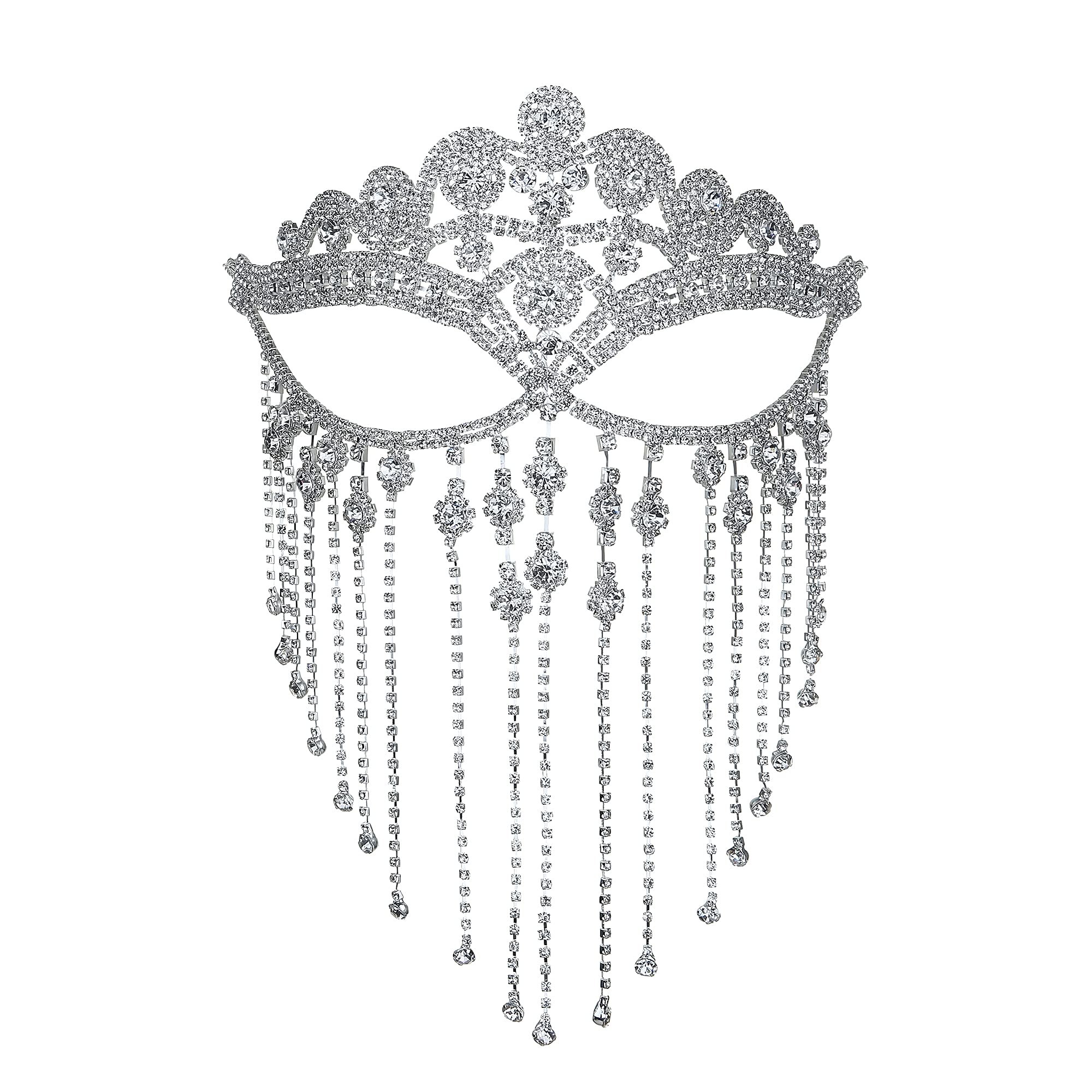 MineSign Tassel Mask chain for Women Fringe Masquerade Head Chain Rhinestone Halloween Cosplay, metal, granite,