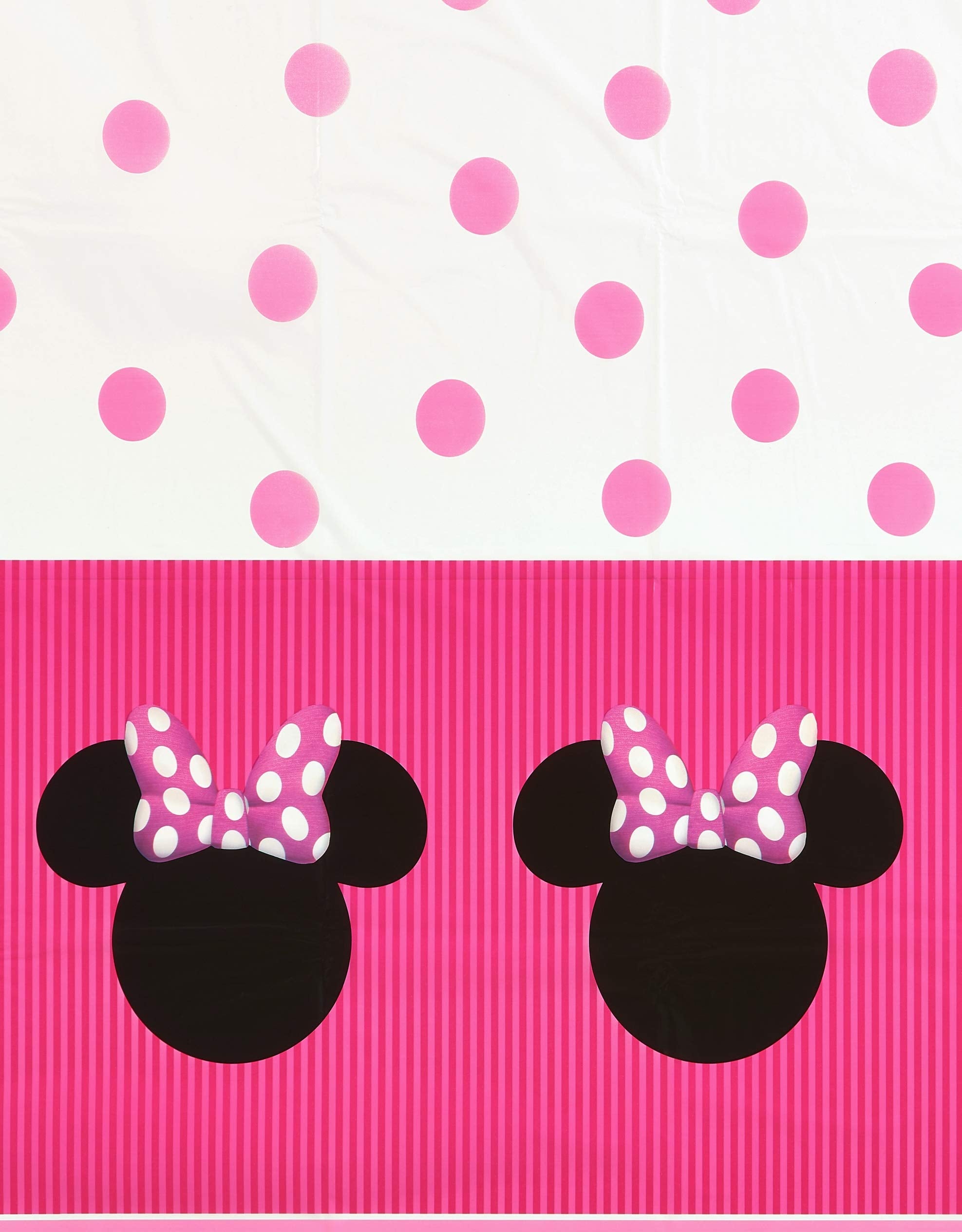 1 Officially Licensed DISNEY Plastic Table Cover...BRAND NEW Store Stock...Features Silhouettes of MINNIE MOUSE & Her Polka Dot Hair Bow on Pink Stripes...Measures 54 Inches Wide X 84 Inches Long...Celebrate in Style!