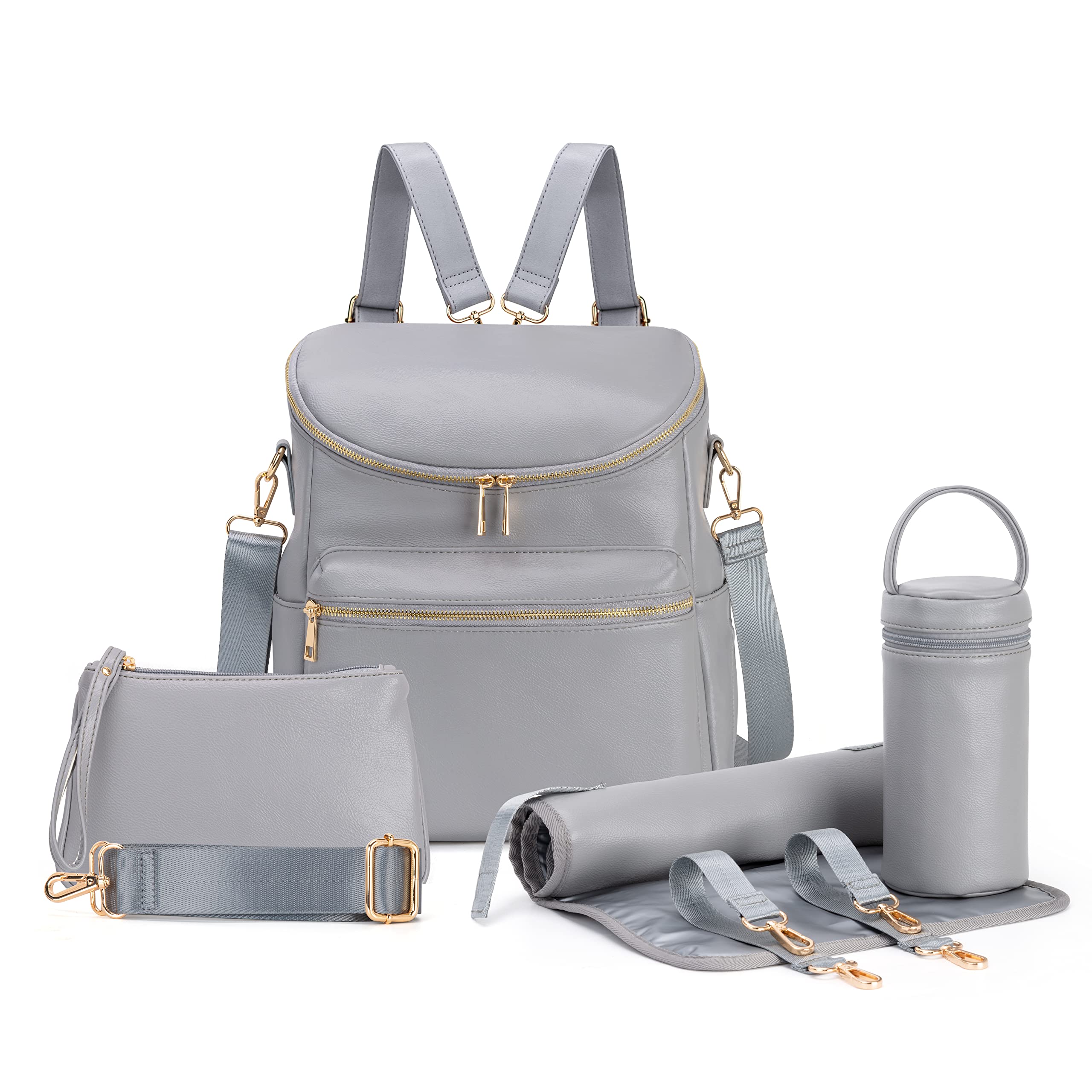 Minsong Diaper Bag Backpack, Fashion Leather Mommy Backpacks, Travel Baby Diaper Bags with in Bag Organizer and Changing Pad, Dark Grey, M, Stylish
