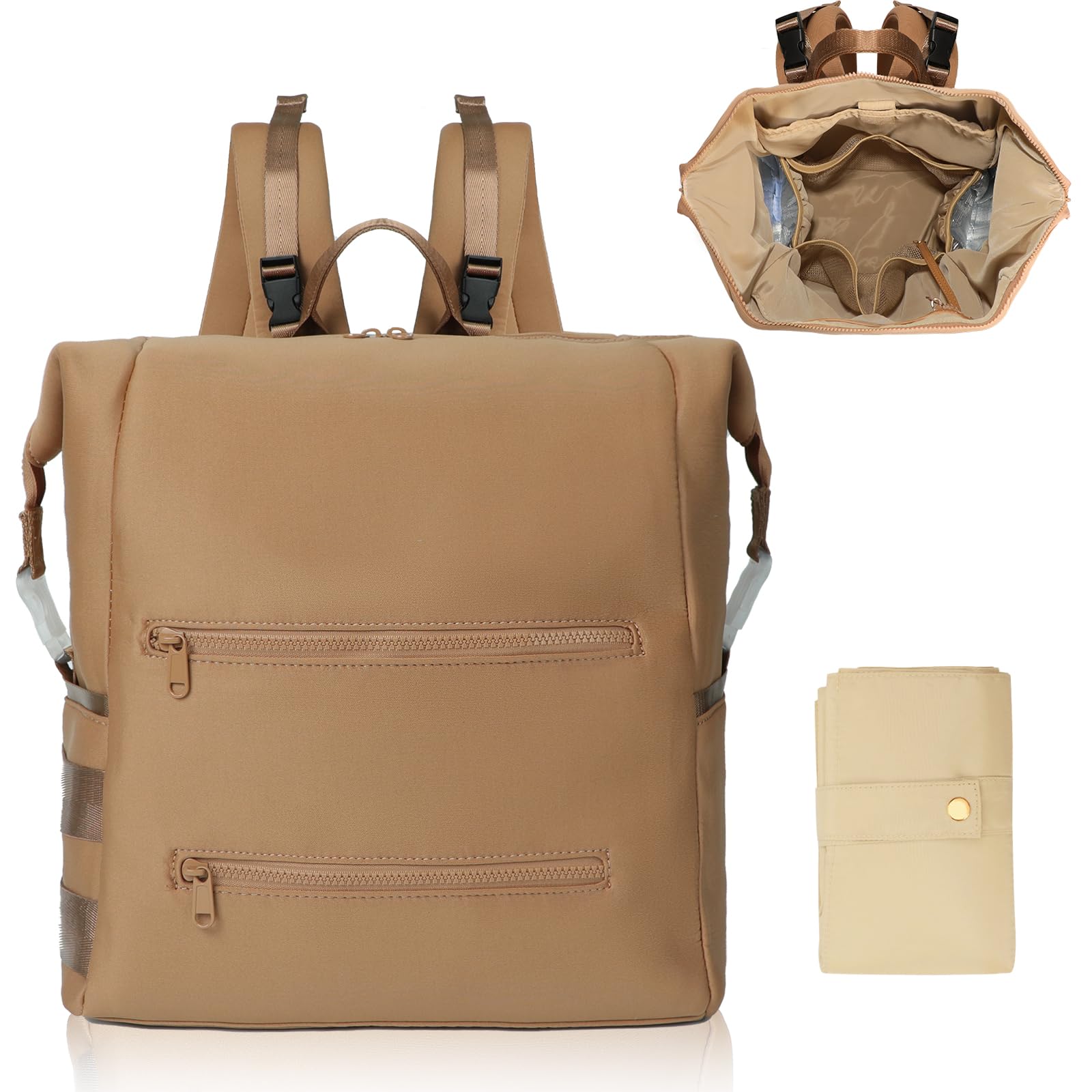 MISS FONG Baby Changing Backpack Neoprene Large Nappy Backpack, Travel Baby Bags with 15 Organizers, Foldable Changing Mat, Stroller Straps for Moms and Dads, Brown