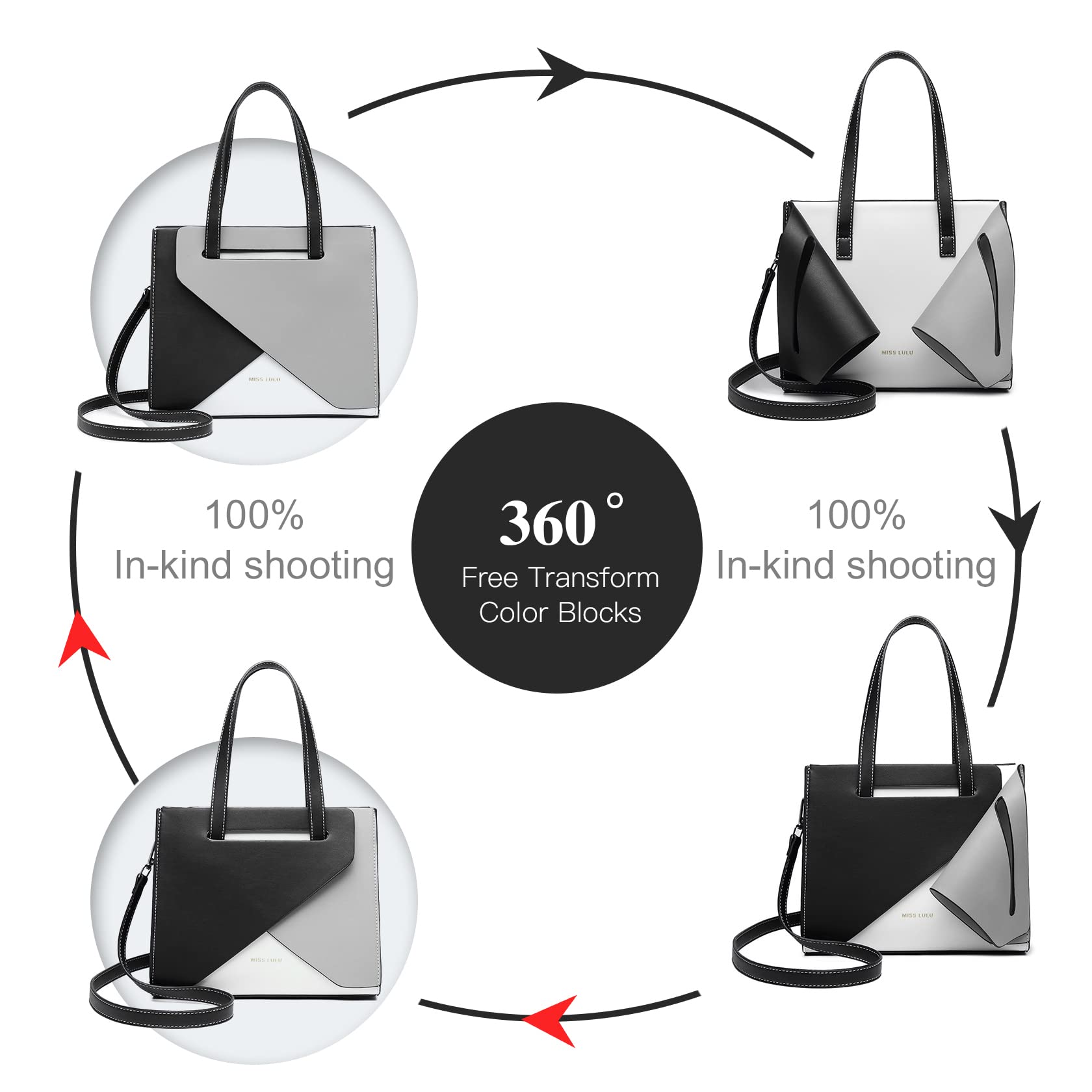 FASHION DESIGN: Available in a range of gorgeous pastel colours, with contrasting 3 colour block sections on the front and geometry-shape design makes this handbag full of stylish. A fantastic day-to-night bag make your mix more brilliant. | DIMENSIONS: 26 cm x 9 cm x 21 cm( Length*Width*Height); Top Handle Height: 17 cm; Weight: 0.67kg. | MATERIAL: The fashion handbag for ladies made of high-quality Synthetic leather with durable polyester lining and light golden hardware. This bag is very textured, simple urban style, make you looks very elegant and fashion. | Structure: 1 open insert pocket, 1 interior zipper side pocket and 1 main pocket. Enough place to store all-day necessities, like mobile phone, cosmetic, wallet and keys etc, make everything well organized. | OCCASIONS: Come with removable and long shoulder strap you can carry it in 3 ways, Handbag/ Cross body bag/ Shoulder bag. Never go out of style, suitable for any occasions, like working, shopping, travelling, school and business.