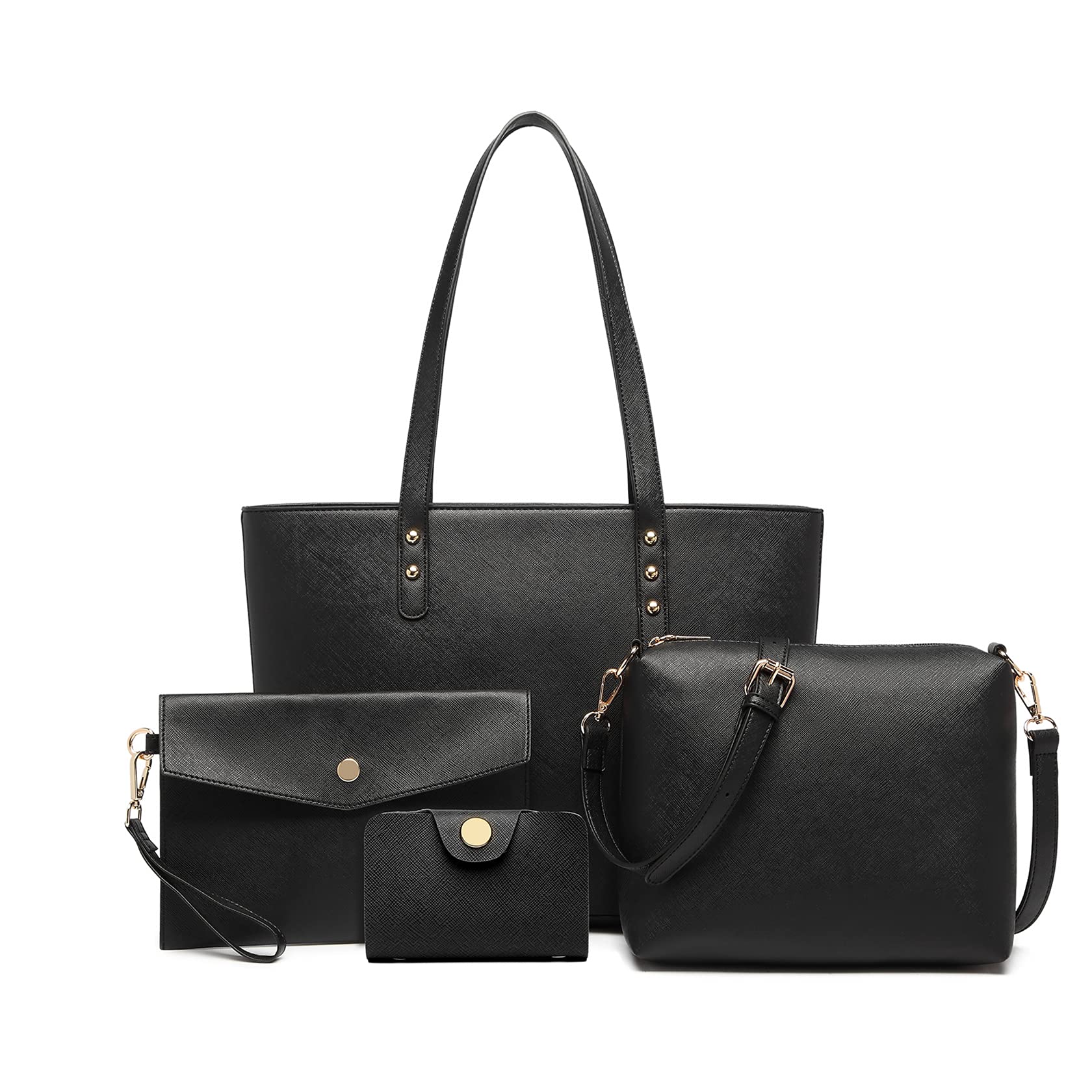 Material: Handbag use high quality cross pattern synthetic leather, durable hardware and touch smooth polyester lining. | Special design: Our designer bold use cross pattern synthetic leather to design set bag, with rivets as decoration and reinforce the bag structure. | Capacity: Handbag can easily hold your mobile phones, wallets, cosmetics, Ipad, A4 item, and any other necessities. | Occasions: Classic Shoulder Bag, Top Handle bag, purse and wristlet bag, suitable for working, shopping, traveling wedding and daily use. | Perfect gift: Concise and Elegant handbag is a perfect choice as a gift to your lovers, friends, or family members on Christmas, New Years, or important significant anniversary.