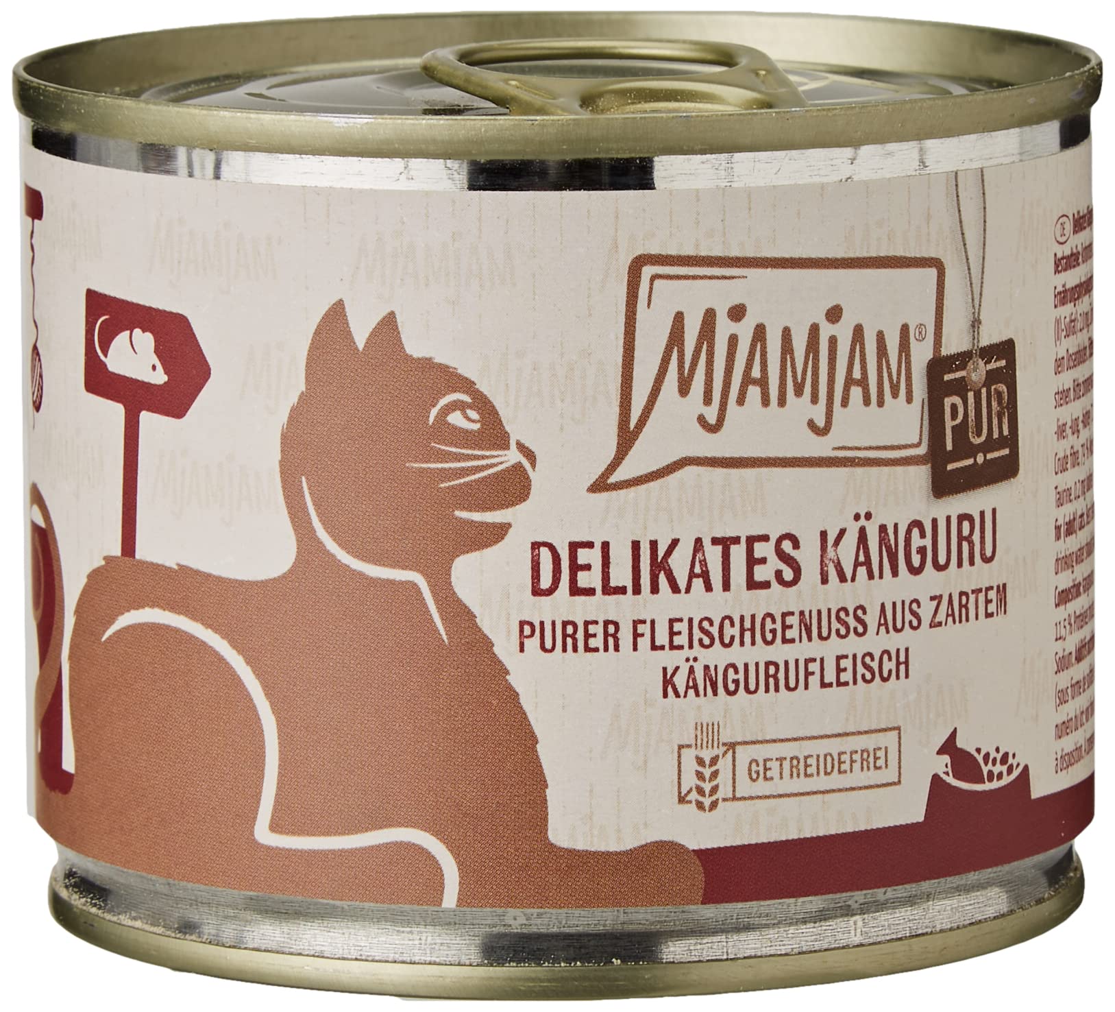 Product DescriptionMeal will give your pet a pure meaty feast. 100% fresh meat for a distinctive and pleasurable experience which will also provide all the essential vitamins and minerals.Ingredients99 % meat and offal's (kangaroo meat, heart, liver, lung, kidneys), 0.5 % mineral nutrients, 0.5 % eggshellsBox Contains1 x MjAMjAM - Natural Wet Cat Food - Pure Meaty Feasts from Delicate Kangaroo Meat - Grain Free - 6 x 200 g