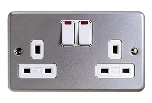 Product DescriptionAll MK products are made to stand up to the wear and tear of everyday use, but in some areas you need them to be even tougher. That's why the Metalclad Plus range of surface-mounted accessories is ideal for factories, workshops, garages and sheds. White Metalclad is suitable for schools and sports halls.Box ContainsK2446 ALM 13 amp 2-gang double-pole switch socket with neonSet of fixing screwsBack boxInstruction manual