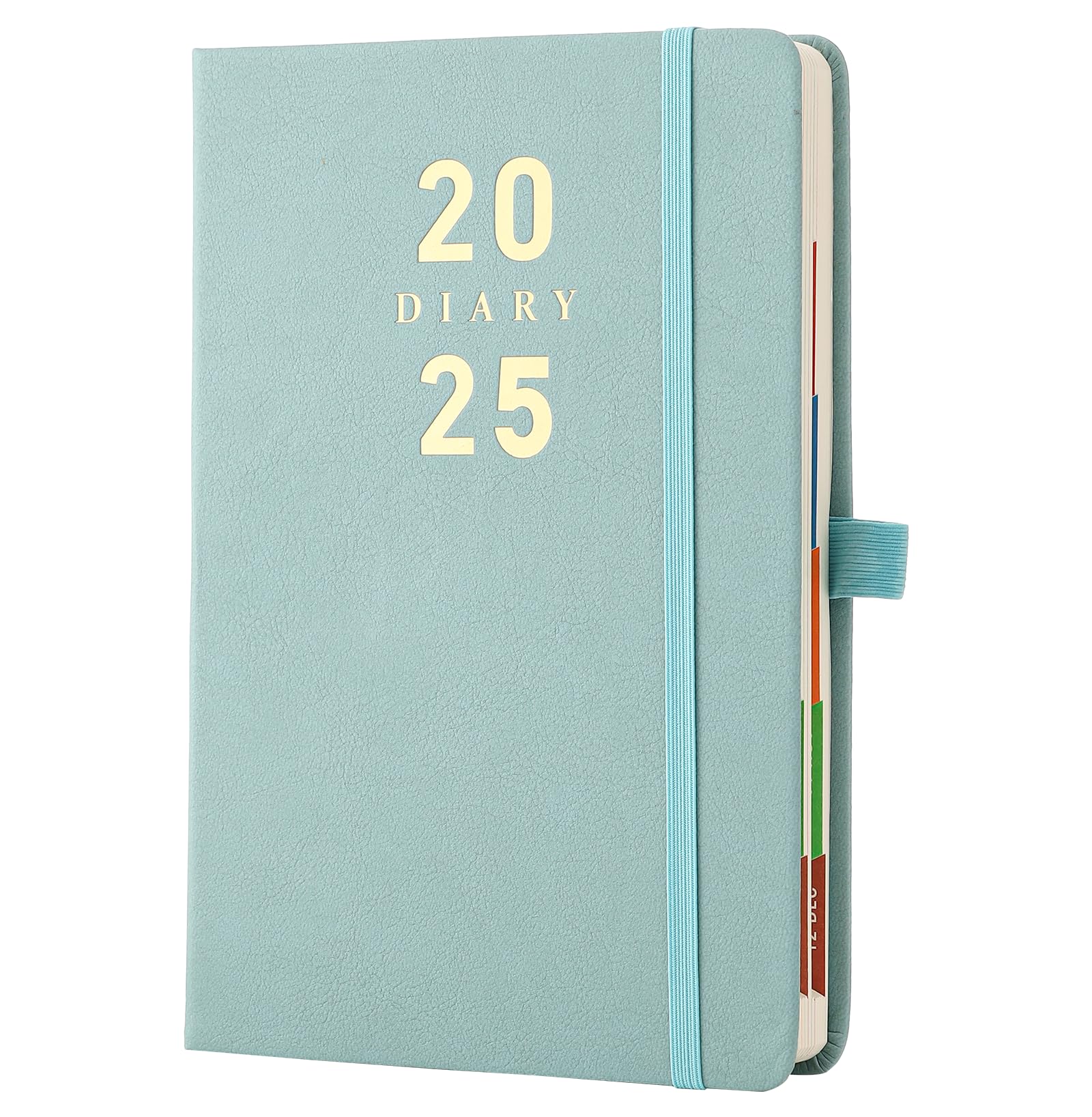Mljtoyo Diary 2025 A5 Day per Page, Hardcover Daily Monthly Planner Organized from Jan-Dec 2025,A5 Day to View Diary with Coloured Monthly Tab,Pen Holder,Bookmarks,Inner Pocket,Green