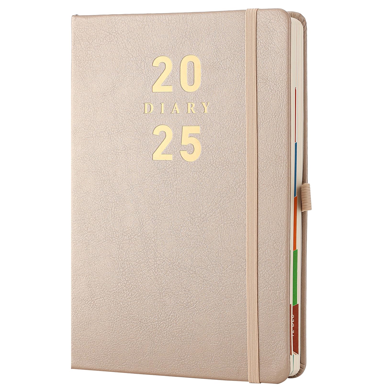 Mljtoyo Diary 2025 Day per Page,Jan-Dec Diary,2025 Diary Day to a Page,Productivity Agenda Daily &Monthly Planner with Coloure Monthly Tabs,Pen Holder,Elastic Bound,Back Pocket,Gold
