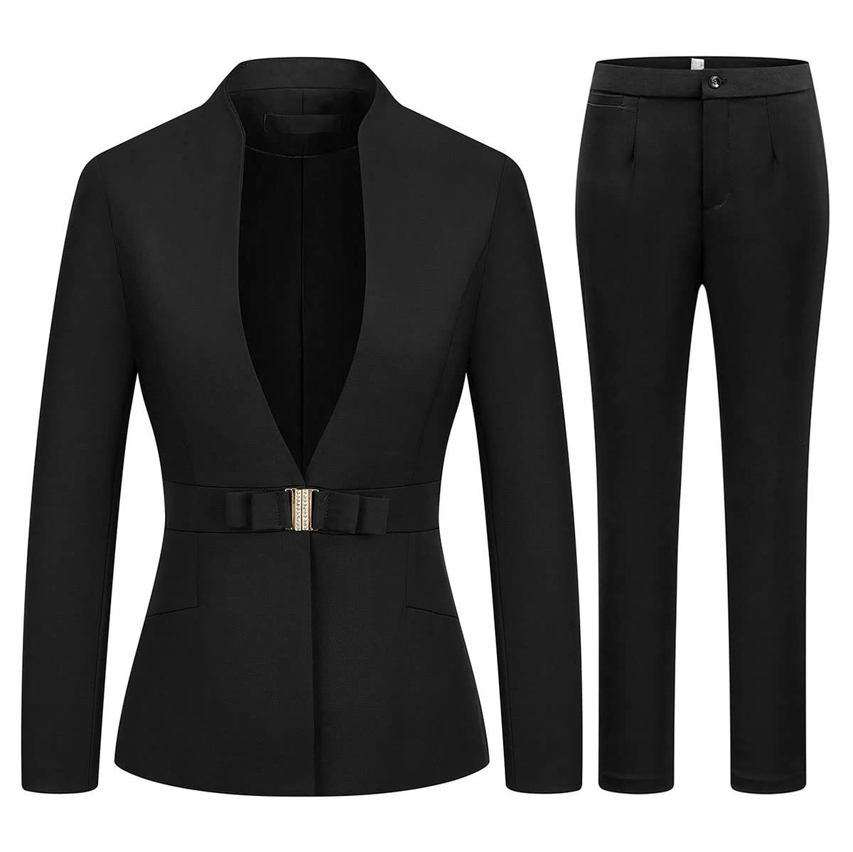 Check out this 2 piece suit for women business. We are devoted to provide comfortable and great looking women's apparel. This women's suit set is designed to be suitable for both work and daily life. You will find subtle details that satisfy your need for a new suit. The no lapel design with buckle closure as a finishing touch, this suit is a great choice for many occasions.