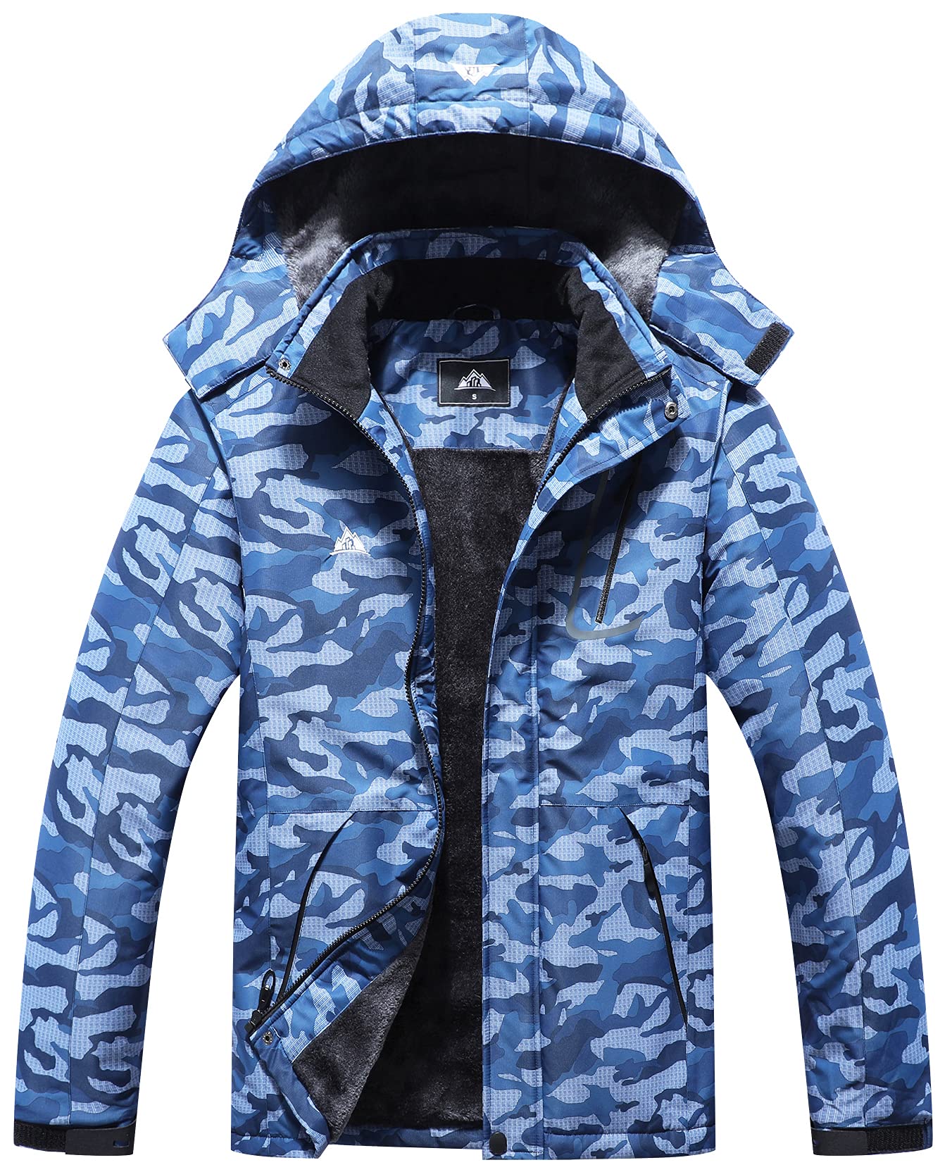 MOERDENG Men's Mountain Waterproof Ski Jacket Windproof Rain Windbreaker Winter Warm Hooded Snow Coat