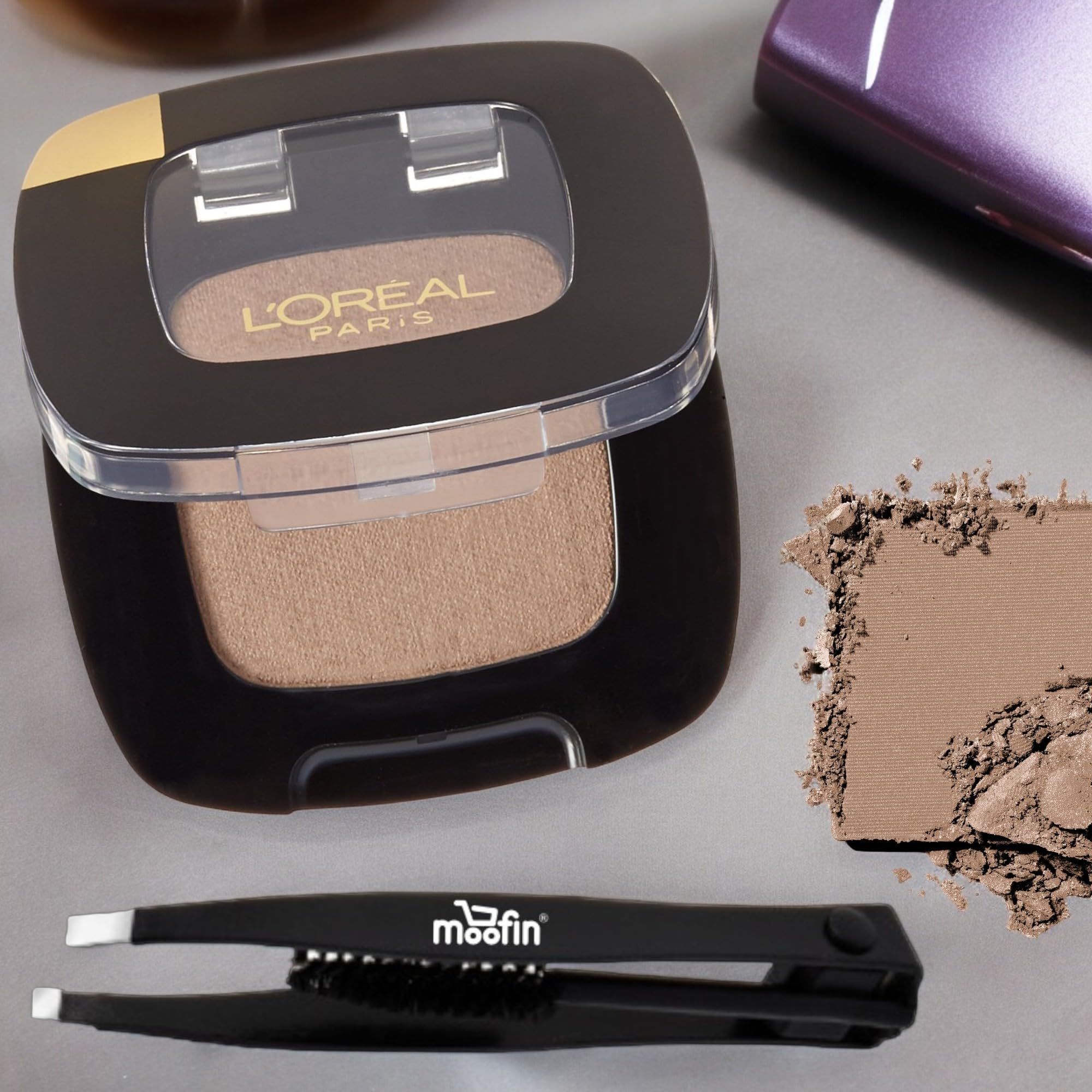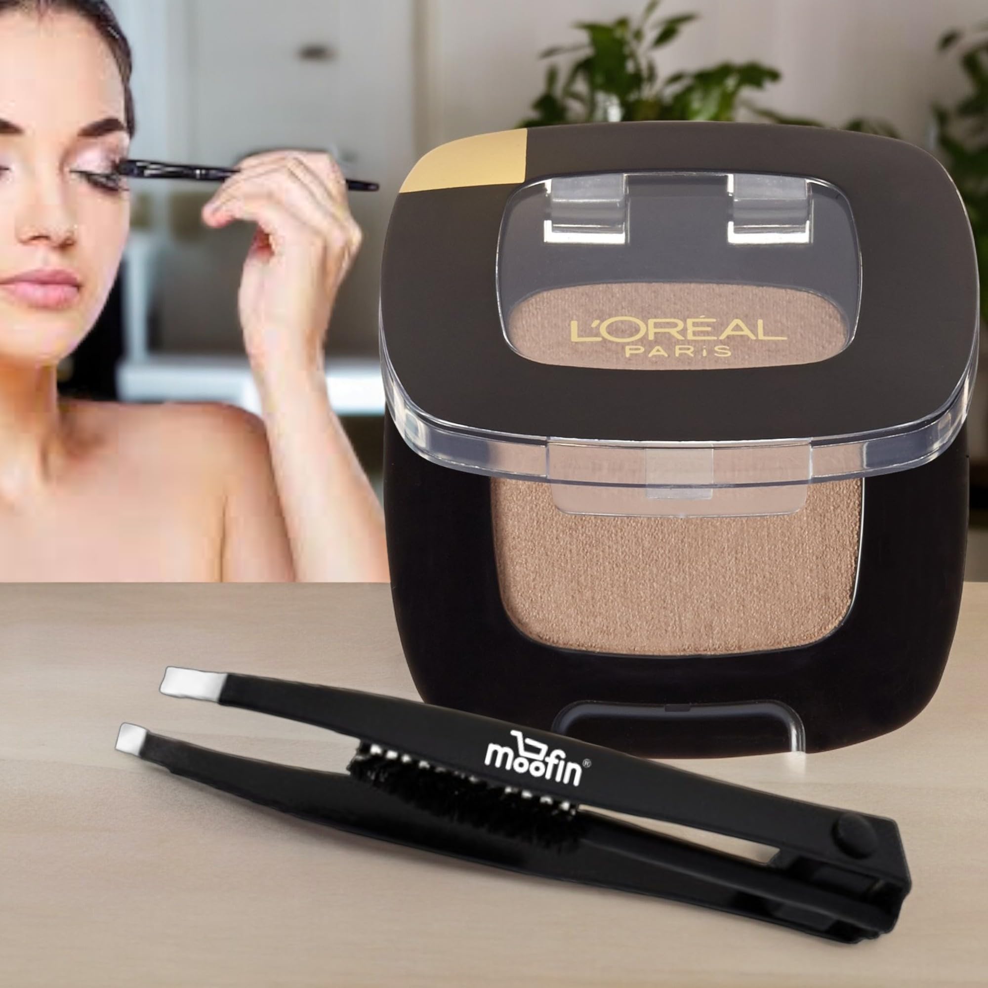 The Double Sided Eyebrow Eyelash Tweezers and L'Oréal Colour Riche Monos Eyeshadow Bundle is a must-have for makeup enthusiasts and beauty lovers. This bundle combines the precision of double-sided tweezers with the elegance of L'Oréal eyeshadows, providing you with essential tools for flawless eye makeup application. Whether you're grooming your eyebrows or creating stunning eyeshadow looks, this bundle offers versatility, convenience, and professional-quality results. These tweezers feature a double-sided design with a slanted tip on one end and a pointed tip on the other, offering versatility for various grooming tasks. The slanted tip is perfect for shaping and grooming eyebrows, while the pointed tip is ideal for precise hair removal and handling small eyelashes. Made from high-quality stainless steel, these tweezers are durable, rust-resistant, and built to last. The sturdy construction ensures precise and reliable performance. With their compact size, these tweezers are easy to carry in your makeup bag, purse, or travel kit, allowing you to maintain your grooming routine wherever you go. The Colour Riche Monos Eyeshadow features a highly pigmented formula that delivers rich, intense color payoff with just one swipe, allowing you to create vibrant and long-lasting eye makeup looks. The eyeshadow has a smooth and blendable texture that glides effortlessly onto the eyelids, providing a seamless application and allowing for easy blending and layering. This bundle includes the Cafe Au Lait shade, a versatile and universally flattering neutral brown color that complements all skin tones and eye colors, making it perfect for creating everyday or dramatic eye makeup looks.