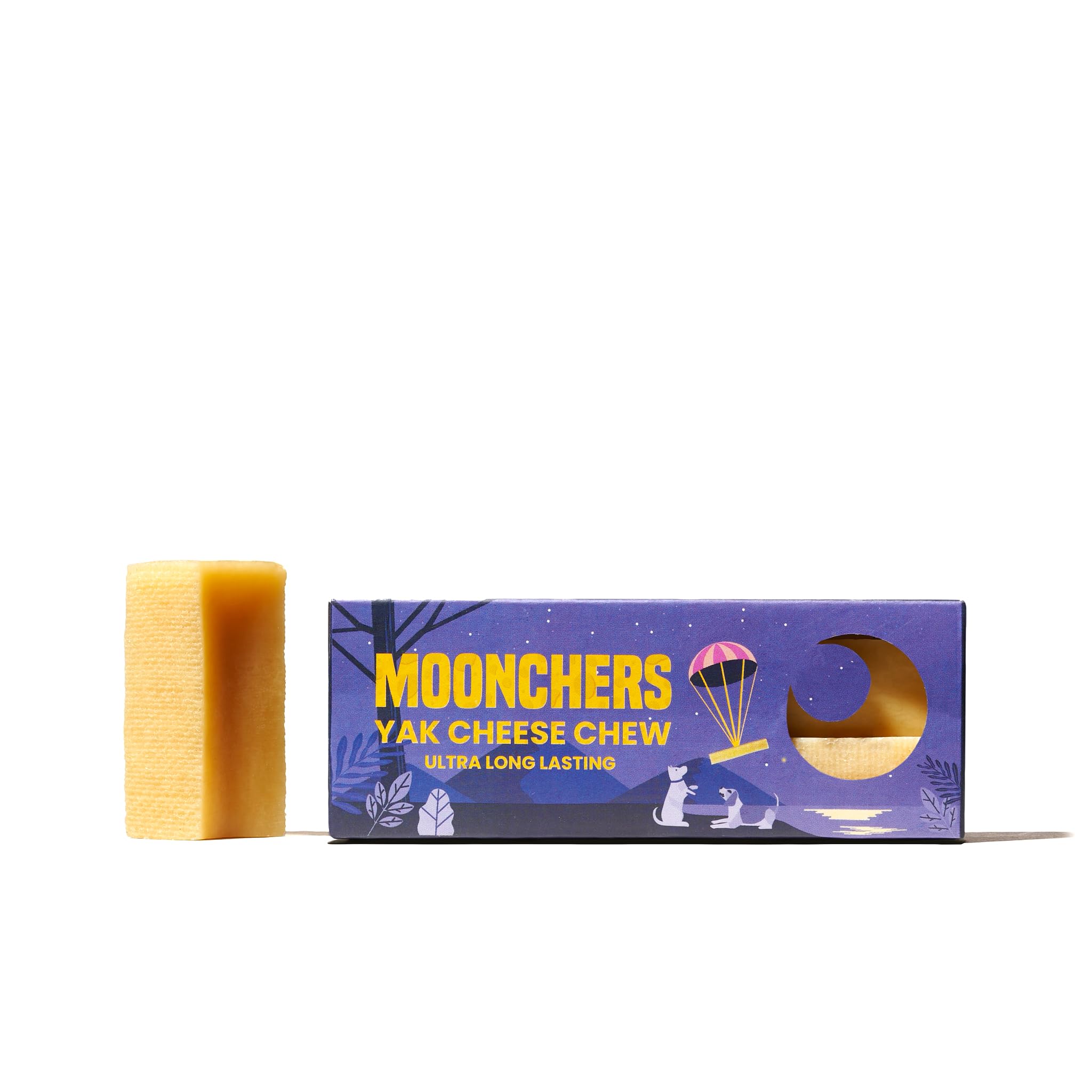 Crafted the Himalayan way, Moonchers Yak Chews are made from 100% natural ingredients, with skimmed yak milk as the primary component. We take pride in being a completely vegetarian dog treat, free from any added nasties like salt, sugar, or preservatives. When you offer your dog a Moonchers Yak Chew, you're not only indulging them but also making an environmentally conscious choice. These chews, sourced from majestic yaks, are more than just a delightful snack; they're an extra-long-lasting source of entertainment and essential nutrition. Our yak bone chews have a hardened texture, ensuring they endure far longer than ordinary cheese sticks. They're perfect for small dogs, puppies, or those furry friends who take their time savoring every bite. Moonchers Yak Chews are eco-friendly in more ways than one. We source our ingredients responsibly from the Himalayan region, and our production processes minimize waste and environmental impact. By choosing Moonchers, you're rewarding your dog with a wholesome treat