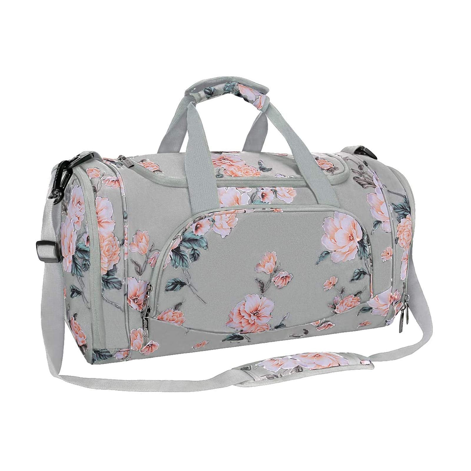MOSISO Sports Duffel Peony Gym Bag with Shoe Compartment for Men/Women Dance Travel Weekender, Gray