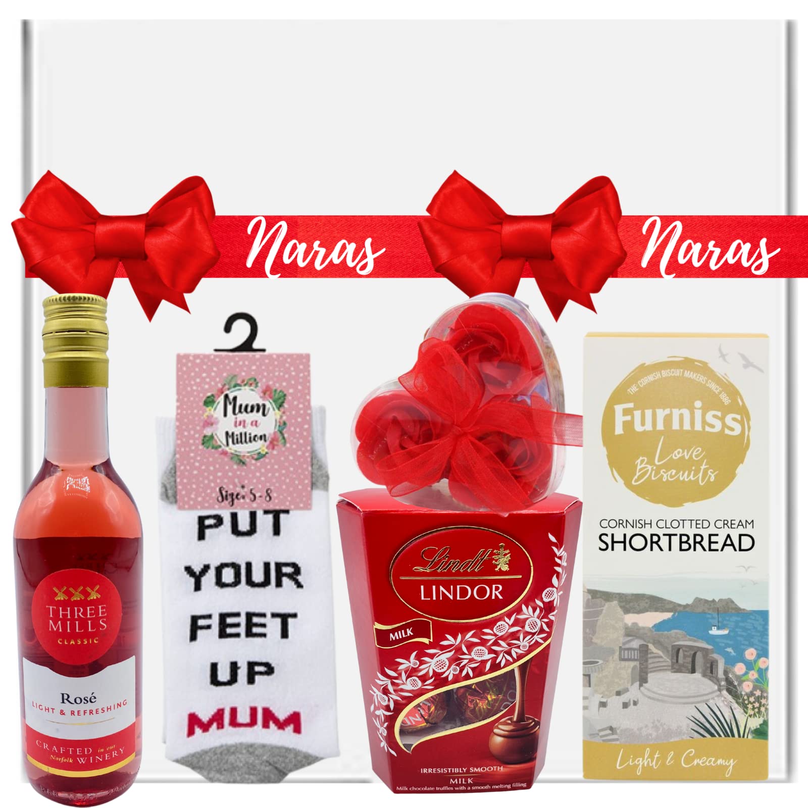 Mothers Day Hamper for Mum - Rose Wine and Chocolate Gift Set, Shortbread Biscuits, Socks, Scented Rose Bath - Pamper Gifts for Women, Mum Gifts, Mothers Day Gifts for Mum, Birthday Gifts for Mum