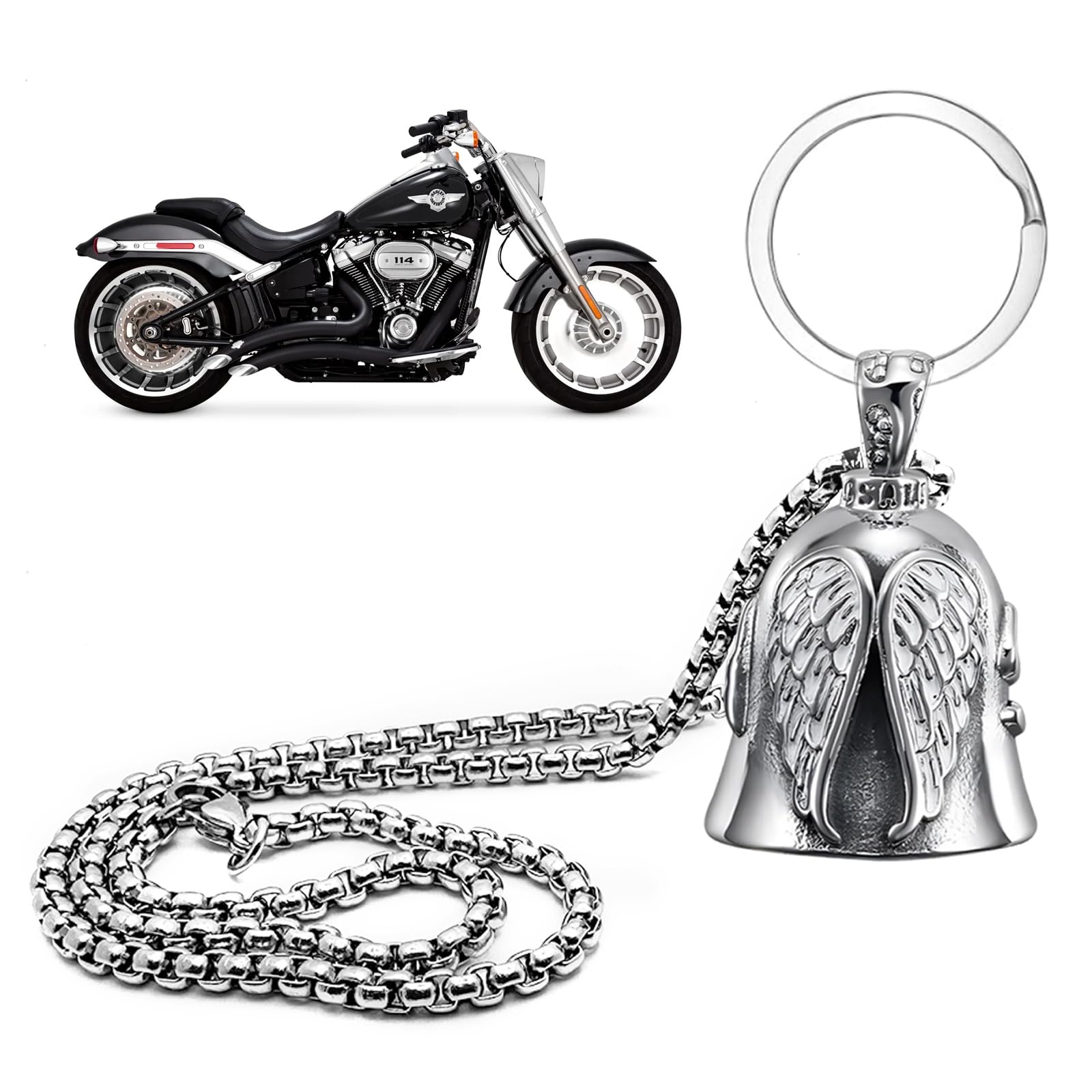 Motorcycle Guardian Bell Durable Set, Angel Guardian Riding Bell with Chain, Metal Alloy Motorbike Luck Riding Bell, Portable Biker Bells for Outdoor, Motorcycle Accessories Gifts for Man Husband