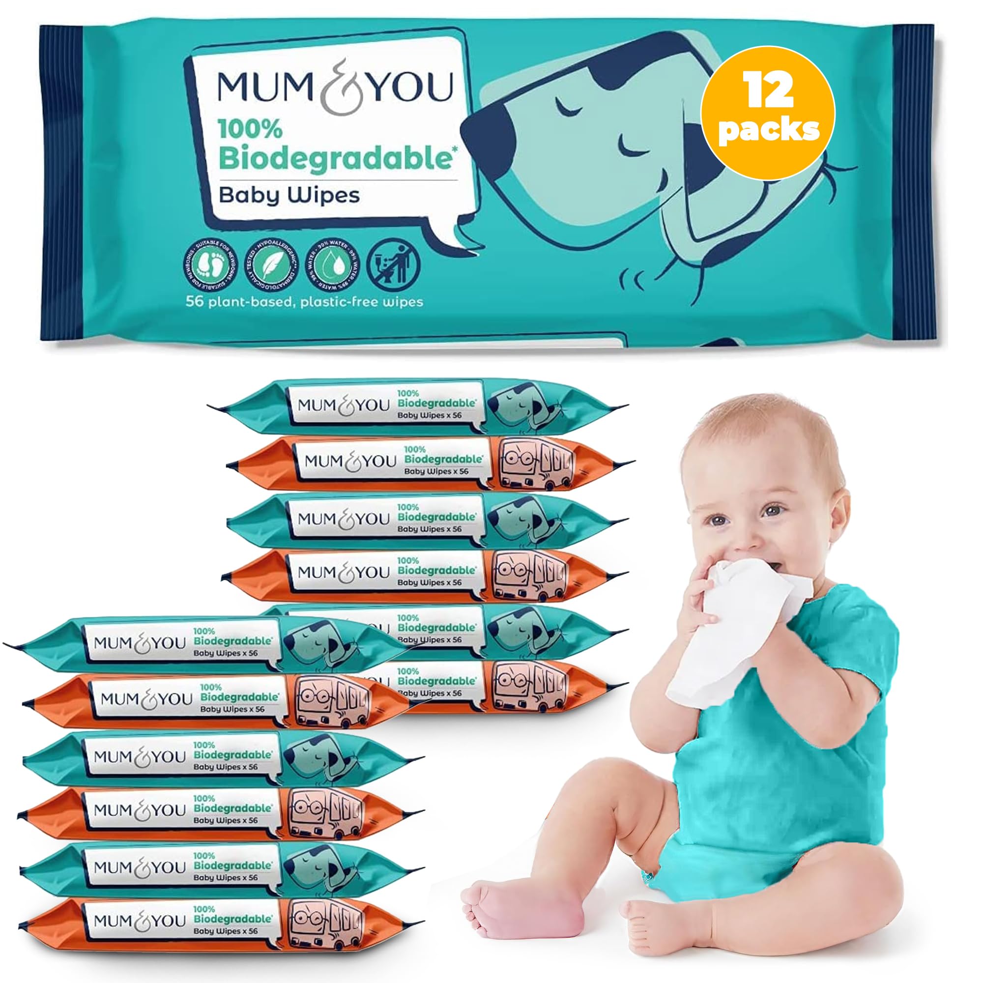 Product DescriptionIntroducing Mum & You Biodegradable Baby Wipes Multipack-the perfect blend of care, convenience, and eco-consciousness. This generous baby wipes multipack offers 672 wipes divided into 12 easy-to-store packs, ensuring you're always prepared for any mess life throws your way. Infused with 99.4% water, these ultra-gentle baby wipes are specially crafted for newborns and sensitive skin, giving your little one the softest, safest clean.Designed for versatility, these wet wipes go beyond diaper duty. Whether it's post-mealtime cleanups, quick freshening up, or as bum wipes, our wet wipes baby deliver a soothing touch every time. Their multipurpose nature makes them essential for both parents and families seeking convenience and quality in one.Stock up with our baby wipes bulk option, ensuring you never run out. Crafted from biodegradable materials, these wipes offer a responsible and sustainable choice for modern parents. No more compromising between what's best for your baby and what’s best for the planet.Mum & You has created a product that cares for both your baby and the environment. Be it at home, on the go, or during travel, these wet tissue wipes are indispensable. Choose premium-quality, eco-friendly baby wipes that make your life easier while keeping your little one happy and clean. Experience the difference today with Mum & You.IngredientsWipes; Aqua (Purified Water), Sodium Benzoate (Part of the remaining 0.5% not naturally derived ingredients), Sodium Citrate (Plant), Myristamidopropyl PG-Dimonium Chloride Phospate (Part plant, part synthetic), Sodium Gluconate (Plant), Citric Acid (Plant) - Every ingredient is hypoallergic; suitable for sensitive & eczema prone skinDirections1. Remove the wipe from its individual packaging. 2. Gently wipe the desired area of the face or baby's skin until clean. 3. Dispose of the used wipe properly, considering its biodegradable nature. 4. Close the container lid tightly after use to prevent the remaining wipes from drying out.Safety WarningAvoid contact with eyes. If this occurs rinse with clean water.