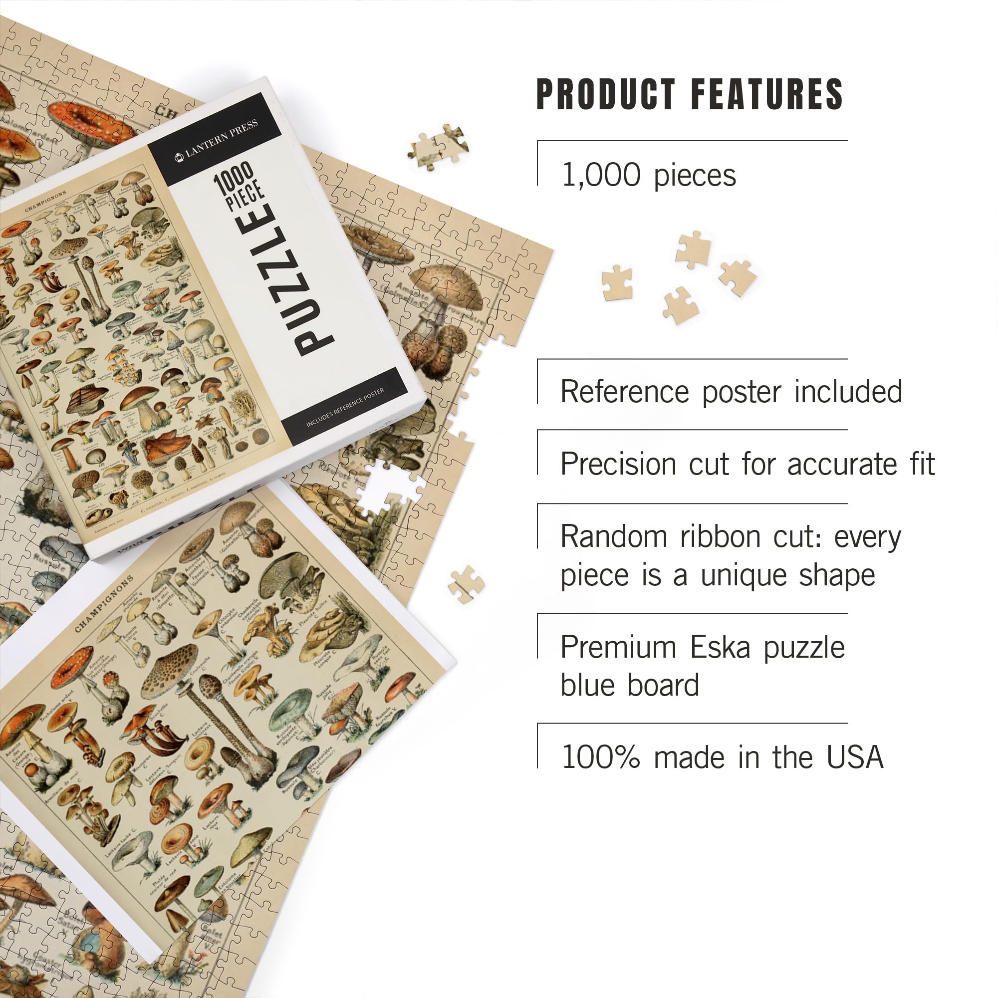 Mushrooms, C, Vintage Bookplate, Adolphe Millot Artwork (1000 Piece Puzzle, Challenging Jigsaw Puzzle for Adults, Made in USA)