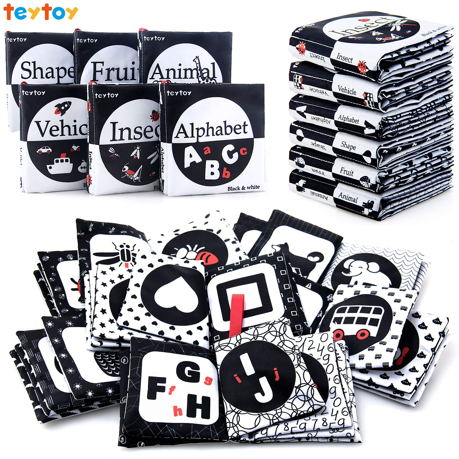 My First Soft Book,teytoy Nontoxic Fabric Baby Cloth Activity Crinkle Soft Black and White Book for Infants Boys and Girls Early Educational Toys Perfect for Baby Shower -Pack of 6