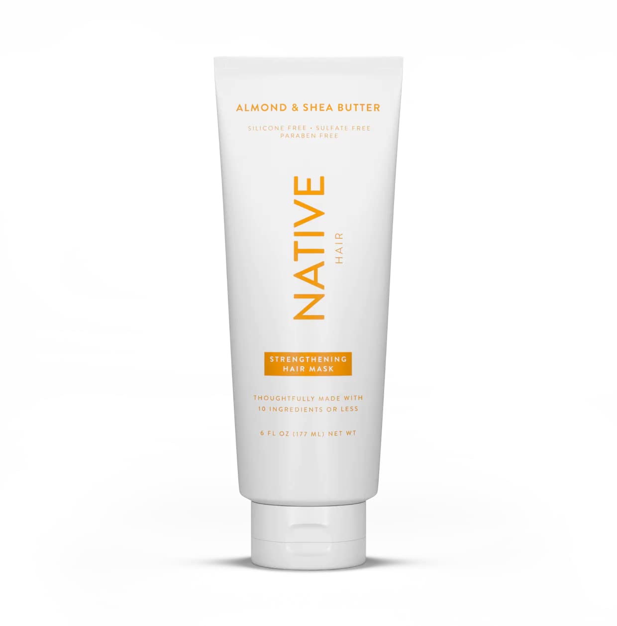 HAIR CARE Strengthening Mask This hydrating hair mask nourishes strands and helps to replenish damaged hair by restoring moisture and reducing breakage. Our hair mask gives strength to your strands with just 10 thoughtful ingredients. Apply generously to wet hair, let sit for 3-5 minutes, and rinse clean. Like… Almond & Shea Butter: A warm and rich scent that comes from the delicious combination of almond and shea butter. Net weight: 6 fl oz (177 ML)