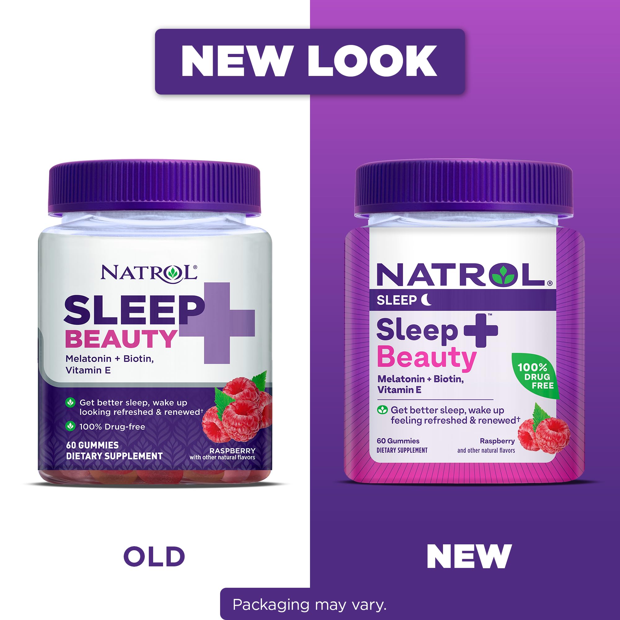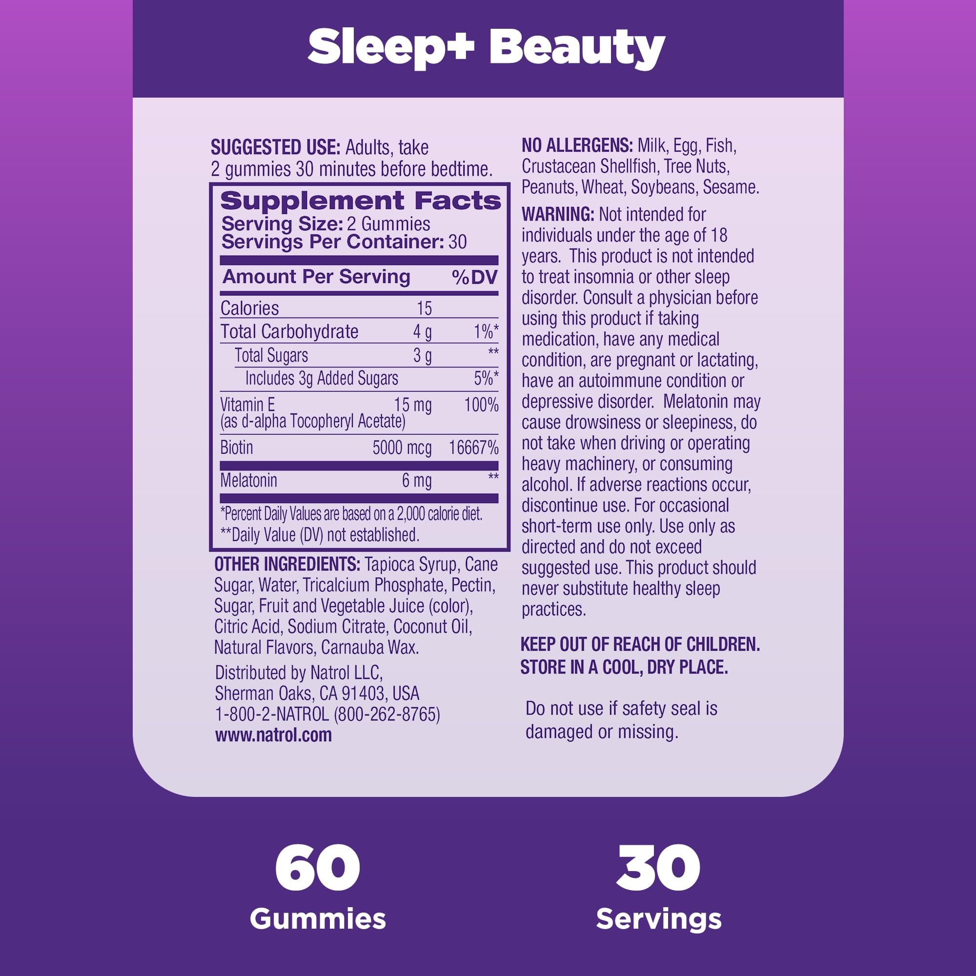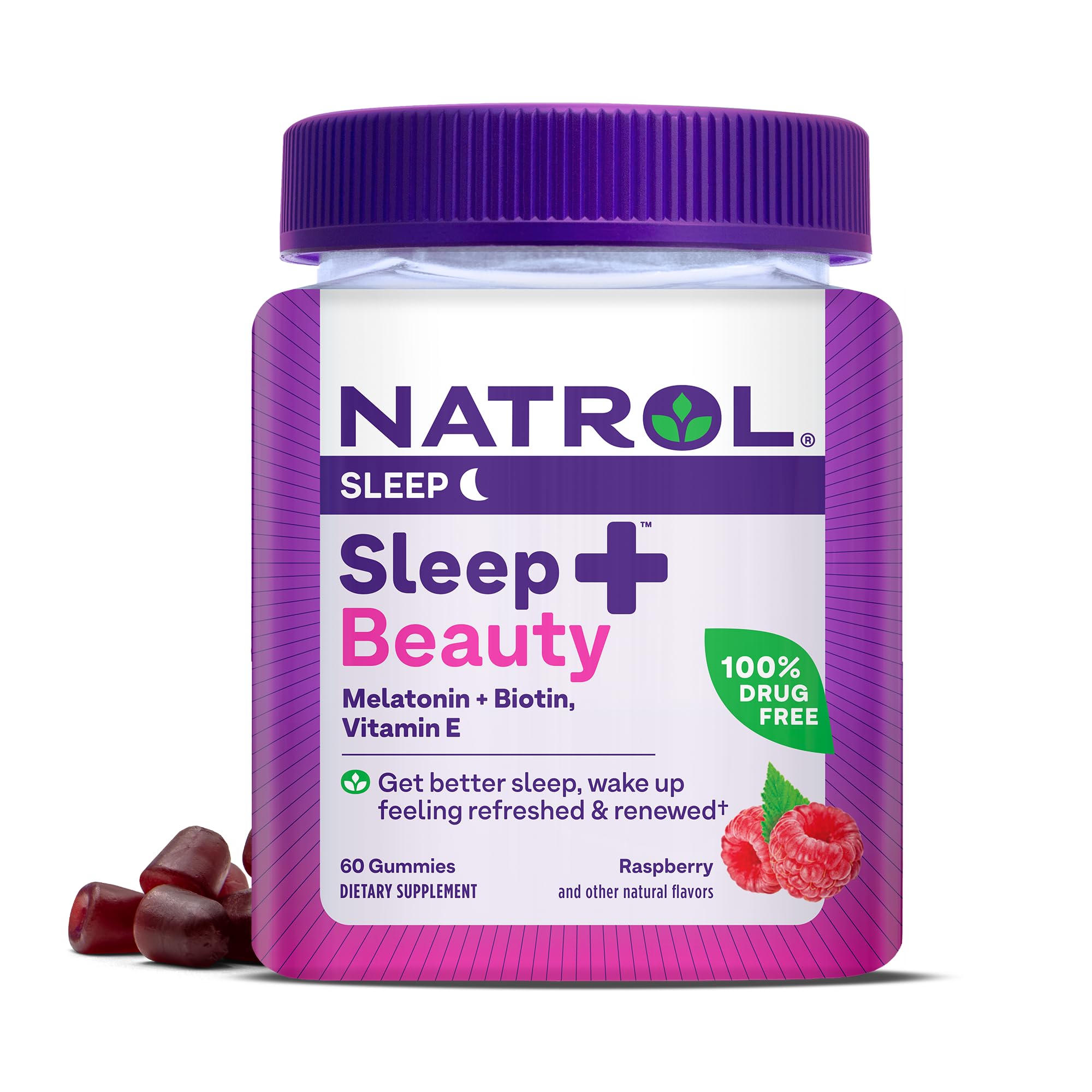 Plus up your sleep. Natrol Sleep+ products provide a range of 100% drug-free solutions for restful and revitalizing sleep.* Natrol Sleep+ Beauty Gummies include Melatonin, Biotin, and Vitamin E . It is a powerful blend that helps you get better sleep, wake up rested and renewed and supports hair, skin and nails.* Our Natrol facilities have successfully been audited to NSF International GMP Certified NSF/ANSI 455-2 Good Manufacturing Practice (GMP) for Dietary Supplements, which is one of the highest quality audits available in the U.S. in the Dietary Supplement Manufacturing category. Natrol is dedicated to creating innovative, quality products, to help you maintain good health and thrive in your busy, modern lifestyle.*These statements have not been evaluated by the Food and Drug Administration. This product is not intended to diagnose, treat, cure or prevent any diseases. Nielsen, xAOC, 52 weeks ending 07/01/23, Sleep Aid Supplements. Ratings based on results of the 2022 ConsumerLab Survey of Supplement Users.