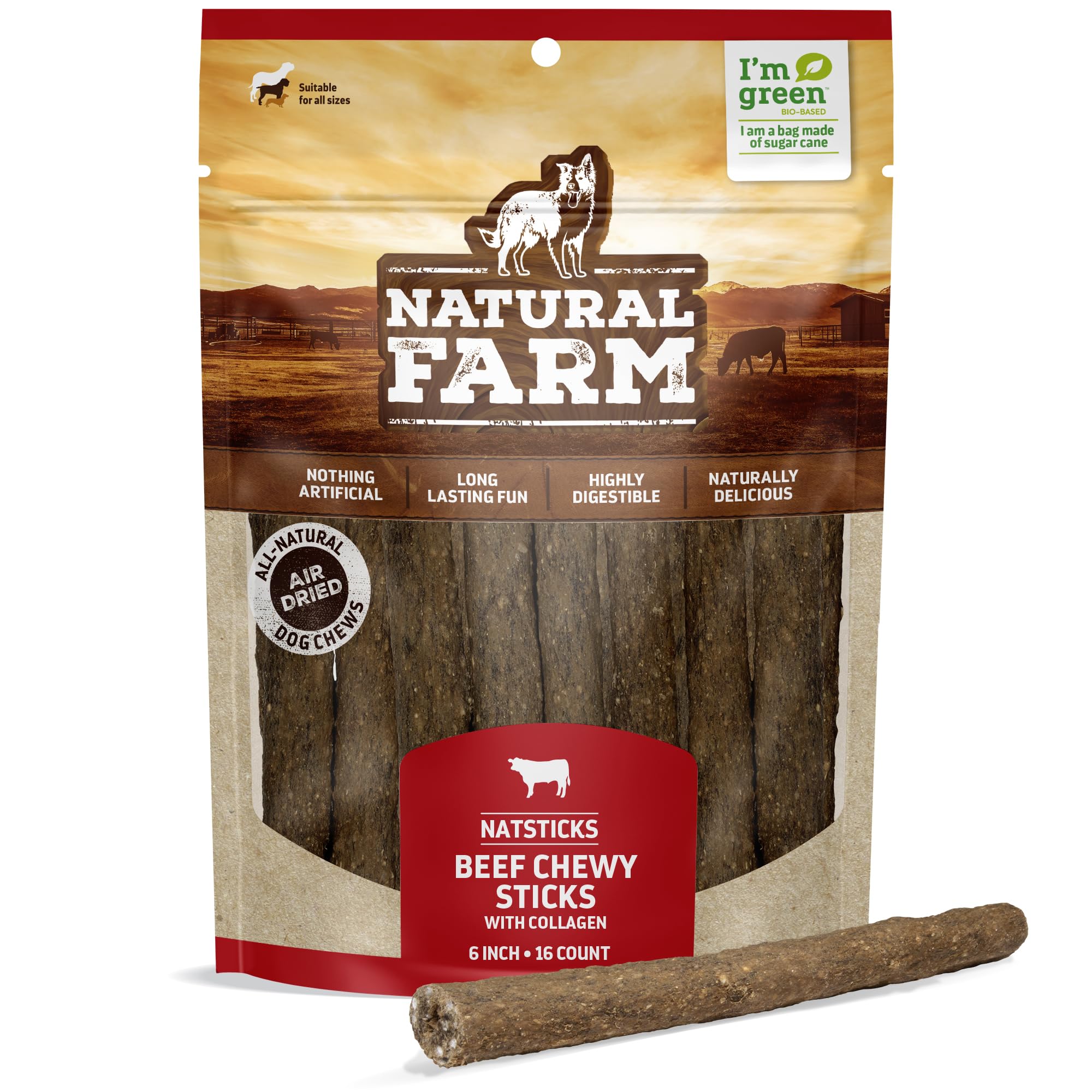 Introducing Natural Farm Natsticks, the quick-chew, all-natural dog treats your furry companion will love. Available in two delectable varieties—beef and chicken—these treats are made with a commitment to simplicity, containing only a handful of pure ingredients. Crafted from 100% all-natural Brazilian beef and free-range chicken, these treats are sourced directly from trusted farms, ensuring a quality you can trust. Natural Farm takes pride in offering truly natural treats, free from additives, preservatives, hormones, chemicals, or artificial flavors. These treats are designed to be quick chews, ideal for training rewards and positive reinforcements. While they may not last as long as bully sticks, they do support dental health by gently scraping away tartar and plaque, leaving your pup with cleaner teeth and fresher breath.Natural Farm Natsticks offer more than just deliciousness. They are protein-rich, with beef and chicken providing support for muscle growth, development, and repair. Additionally, the collagen naturally present in these treats supports healthy skin, a glossy coat, and strong joints.Not only will your pet adore these treats, but your purchase also makes a difference. Each purchase helps us contribute to nonprofits supporting pets, people, and the environment. This includes our partnership with One Tree Planted, where new trees are planted in deforested regions around the world. Choose Natsticks for a wholesome, tasty treat that gives back and supports a brighter future for all.