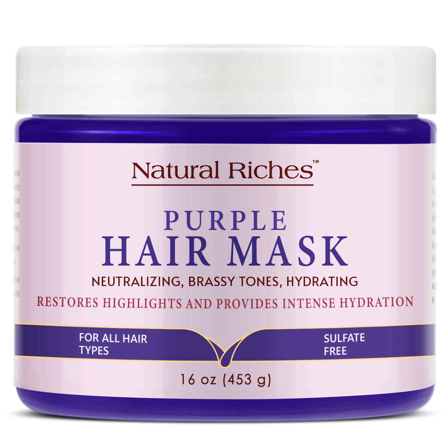 Revive your blonde, platinum, bleached, silver, gray or ash hair with Natural Riches Purple Hair Mask. This protein deep conditioner treatment is designed to remove yellow tones, reduce brassy hair and condition dry, damaged hair. This cruelty-free hair mask is enriched with natural ingredients to help nourish your hair and protect it from further damage. It helps restore the natural beauty of your hair while leaving it looking and feeling soft, smooth and shiny. Give your hair a boost of energy with Natural Riches Purple Hair Mask. No more Yellow and Brassy Tones:Purple Hair Mask with Intense Pigments that Neutralizes brassiness. Natural Riches hair mask for blonde, platinum gray, or silver hair perfect gloss treatment for revitalizing color-treated hair. Removes brassiness and yellow tones while conditioning the hair at the same time Deeply Hydrating:Aside from balancing tone, we’ve formulated our purple hair mask to penetrate deep into every follicle to hydrate and restore bleached hair; Repair your hair at a cellular level and get the shine you deserve with our purple hair mask for dry damaged hair Salon Quality:A Luxury Salon quality hair deep conditioning Purple Hair Mask. Replenishes hair nutrients reverses effect of hair stress and damage. Deep conditions, detangles, hydrates revives dull and dry hair improving manageability elasticity and giving it a beautiful shine. Unique Keratin formula:Natural Riches Purple Hair Mask Contains Vitamin E to help replenish the shine that the hair loses when exposed to harsh chemicals, heat, and styling products. Vitamin B and Vitamin A present increases moisture and hairs elasticity. Purple Protection:Perfect for dry, damaged, brittle and color-treated hair of any texture. Natural Riches Purple hair treatment mask will help treat your split-ends from straightening damage and from years of color treatments How To Apply: Natural Riches purple hair mask is designed to help neutralize yellow and brassy tones in blonde, silver, and white hair. It is typically used once or twice a week to maintain the desired hair color. Here's how to use a purple hair mask: Wet your hair thoroughly in the shower. Dispense a quarter-sized amount of the purple hair mask into your palm. You may need to use more or less depending on the length and thickness of your hair. Massage the hair mask into your hair, starting at the roots and working your way down to the ends. Comb your hair to ensure that the hair mask is evenly distributed. Leave the hair mask in your hair for the recommended amount of time, usually 3-5 minutes. This will allow the purple pigments to neutralize the yellow tones in your hair. Rinse the hair mask out of your hair thoroughly. Our large 16 fl. oz. Jar ensures that you have enough product for multiple uses, making it an affordable and effective addition to your hair care routine. And, as a cruelty-free brand, you can feel good about using our products knowing that they are not tested on animals and are free from harsh chemicals. Safety: For external use only. Keep out of reach of children. Avoid contact with eyes. Discontinue use if irritation occurs. Store in a cool and shaded area.