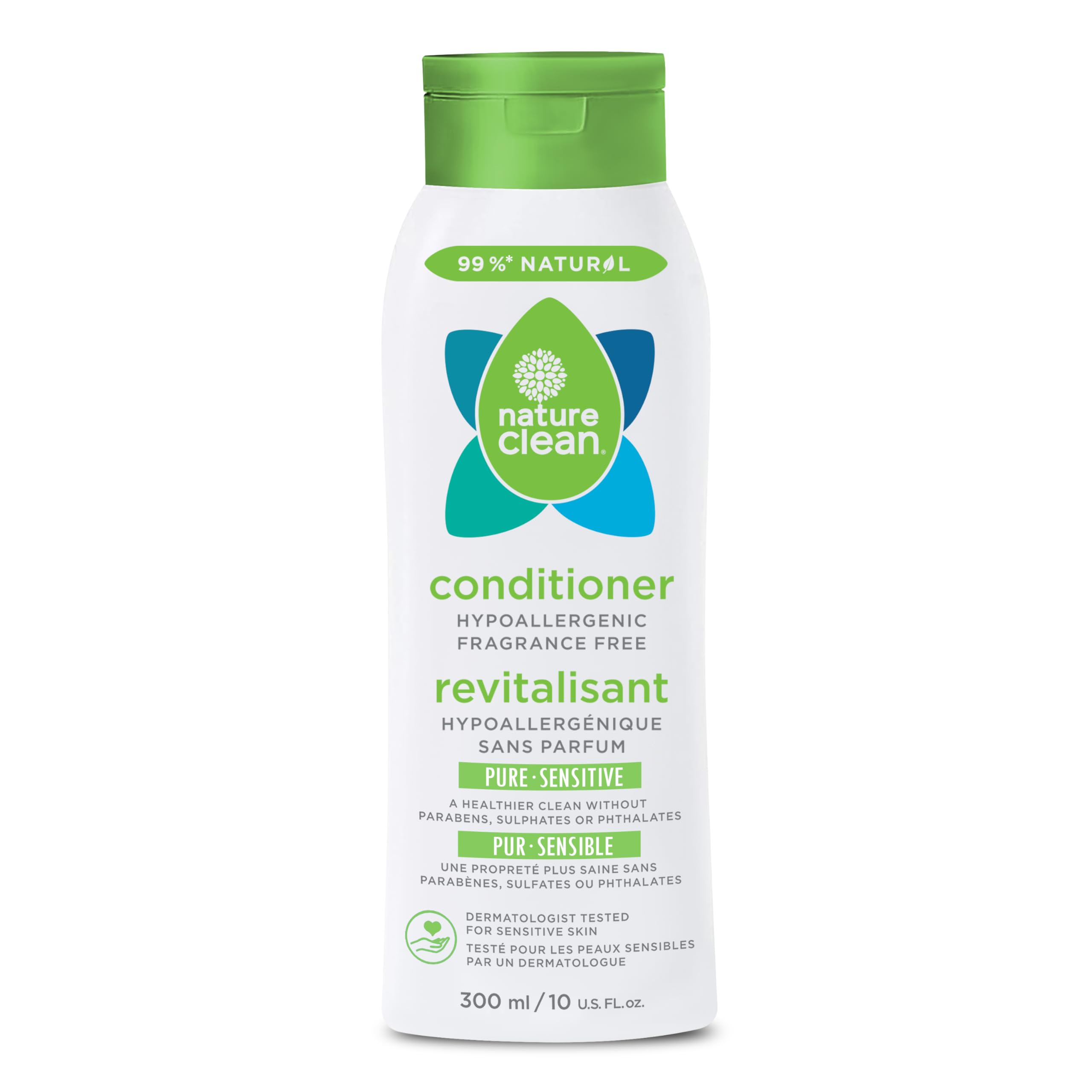 Nature Clean Pure-Sensitive Conditioner is great for all hair types. It conditions, softens, and detangles hair naturally with Guar Gum. It's also fortified with Vitamin E and B5. Our conditioner is unscented, hypoallergenic, and clinically tested for sensitive skin. This product is biodegradable and not tested on animals.