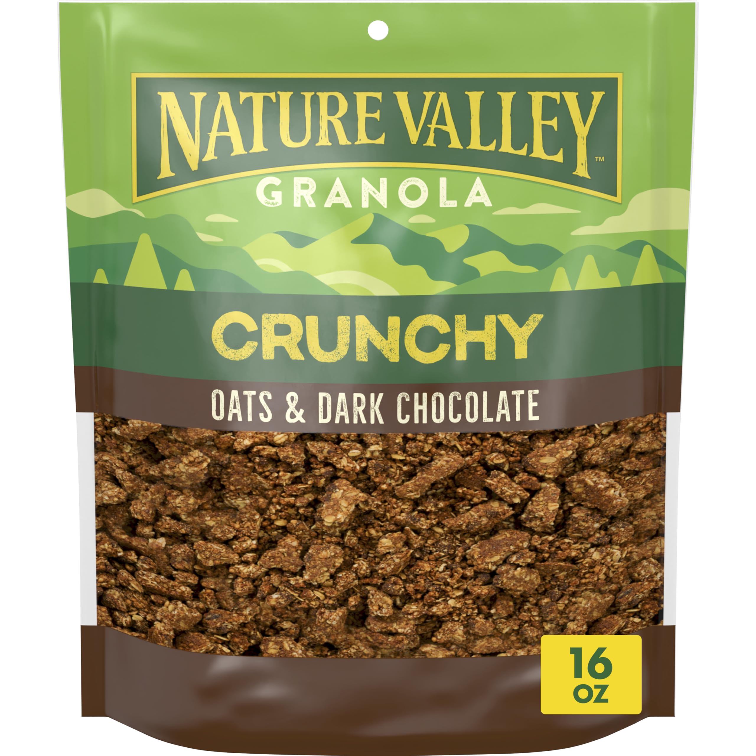 Refuel with the wholesome goodness in every bag of Nature Valley Granola Oats and Dark Chocolate Crunchy Granola. Made with whole grain oats, these granola clusters are bursting with the flavor of Nature Valley Oats & Dark Chocolate granola bars. This version is a loose granola cereal made with the same chocolatey taste for a delicious snack or part of breakfast on the go. Each serving helps satisfy hunger with at least 12g of whole grain (at least 48g recommended daily). Plus, the dark chocolate granola bites are made with no high fructose corn syrup, no artificial flavors and no colors from artificial sources. Nature has never tasted so good. Sprinkle a handful of granola cereal over a yogurt parfait for serious crunch. Pour a bowlful with milk for an irresistible breakfast cereal. Add your own fruits and nuts for DIY trail mix. Or divvy up the whole bag into school snacks. Just reseal this 16 ounce bag of loose granola cereal for energy you can take on the go. At Nature Valley, we believe that what you put in is what you get out. So wherever the moment takes you and your family, you can rely on our great-tasting snacks to help keep you going.