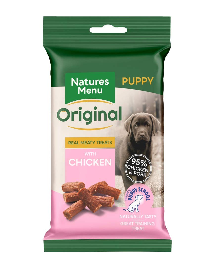 DescriptionProduct DescriptionFlavour Name:Chicken | Size Name:60 g (Pack of 12) An extension to your popular Real Meaty Treats Range with a Puppy specific treat. Same meaty, sausage format but smaller piece sizes to make suitable for puppies smaller mouths and increased demand for treats whilst training Endorsed by Puppy School Same 60g pack size. Smaller piece sizes make them perfect for puppies smaller mouths and increased demand for treats whilst training. Made without grain and containing no artificial flavours or colours. Comes in a handy re-sealable pack to keep the treats fresh.IngredientsChicken 50%, Pork 45%, MineralsDirectionsstore in a cool dry place