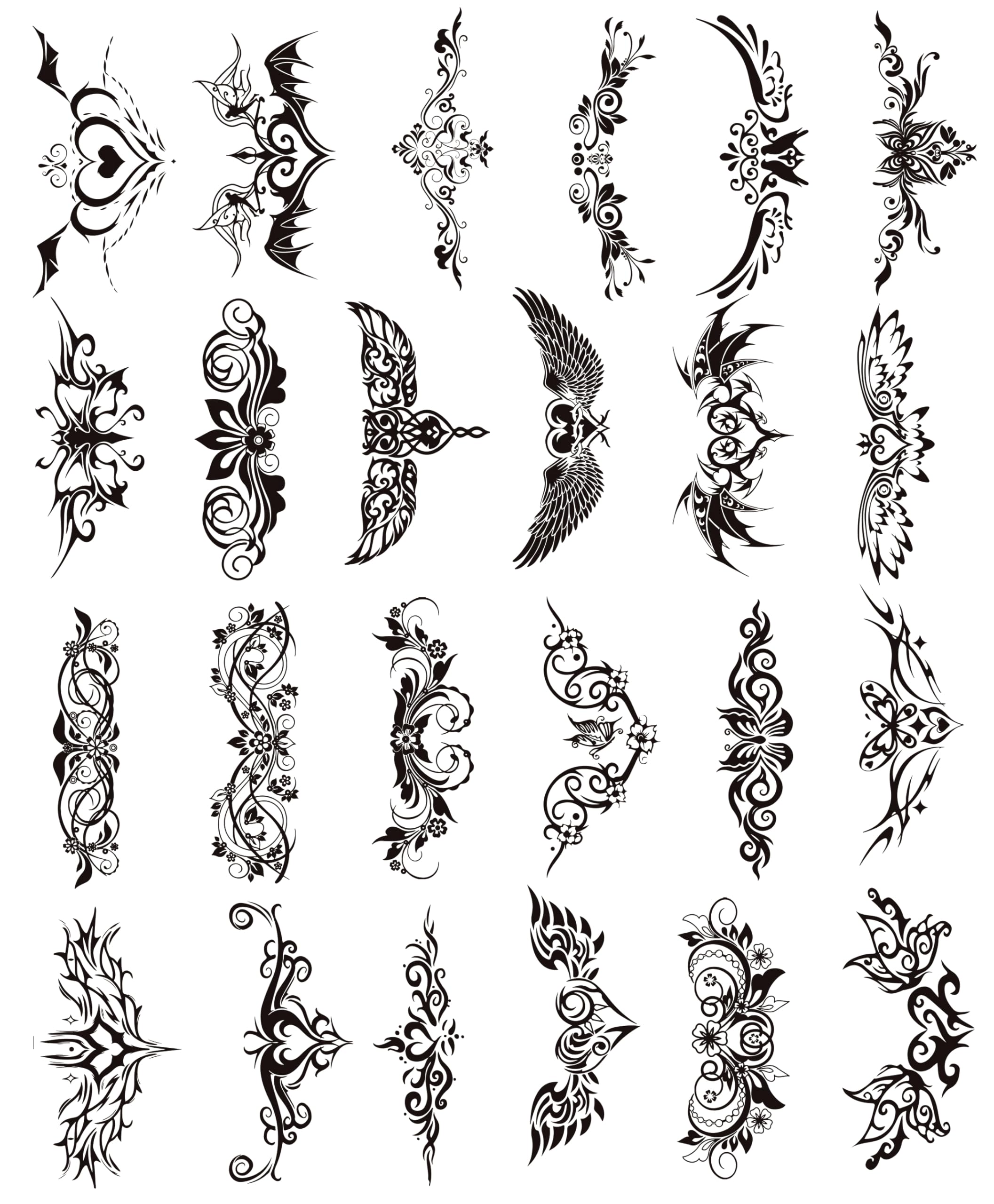 Naughty Bold Girl Tattoos - 24-Sheet Black Flower Wing Temporary Tattoos for Women Ladies Girls, Fun for Lower Back Legs Arms Butt Stomach Fake Tattoo