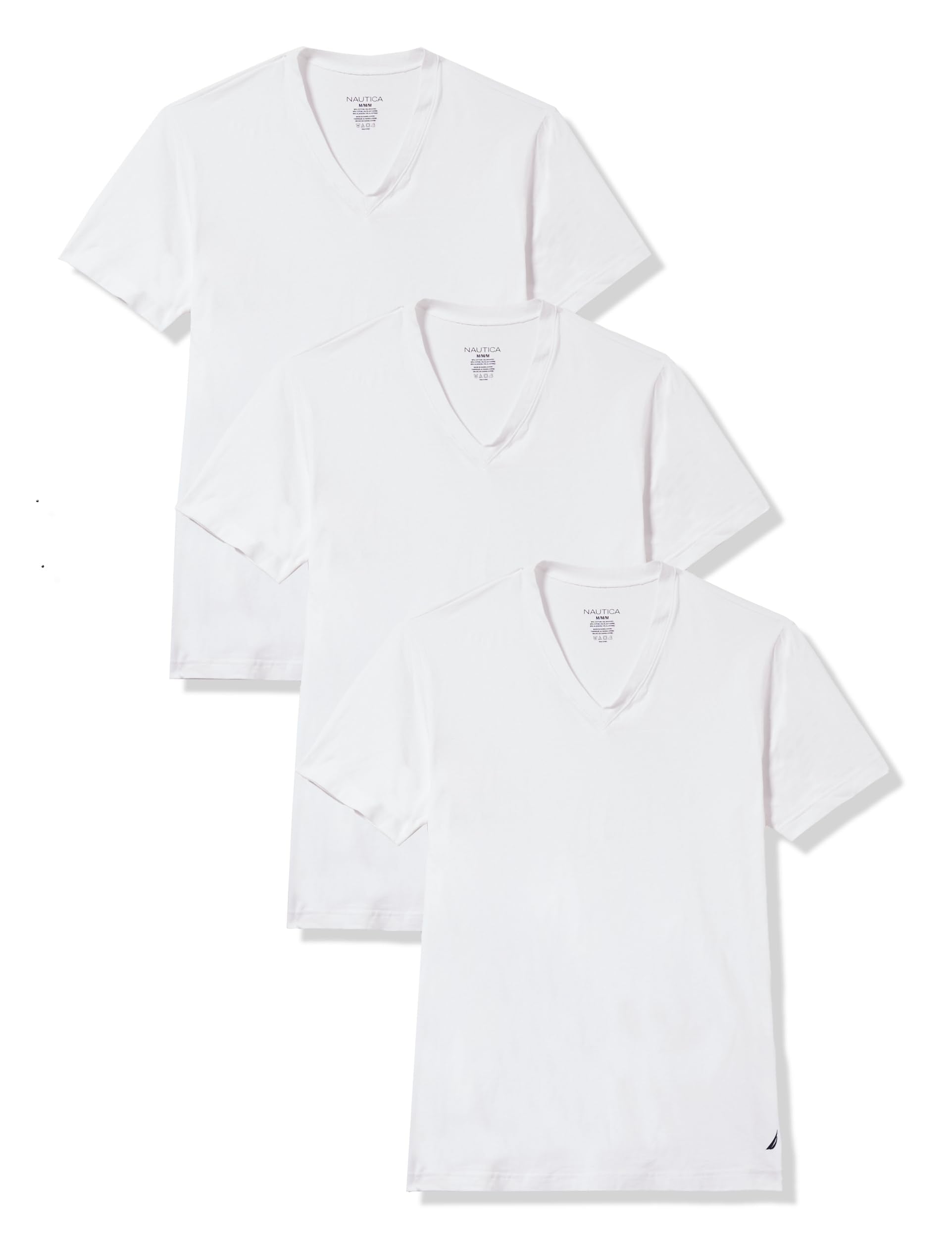 Nautica Men's 3-Pack Cotton Stretch V-Neck T-Shirt, White, S