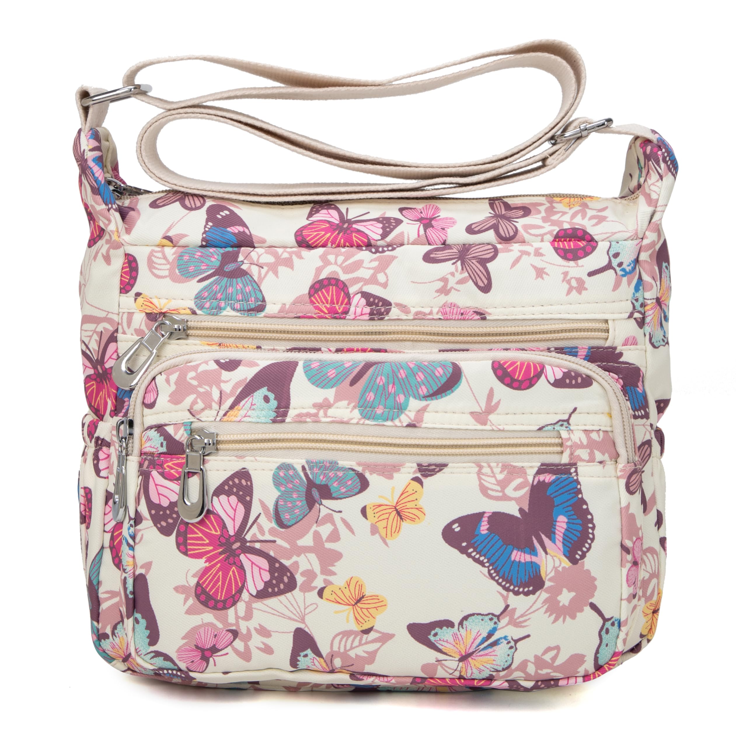 Nawoshow Nylon Floral Multi-Pocket Crossbody Purse Bags for Women Travel Shoulder Bag (T09-butterfly)