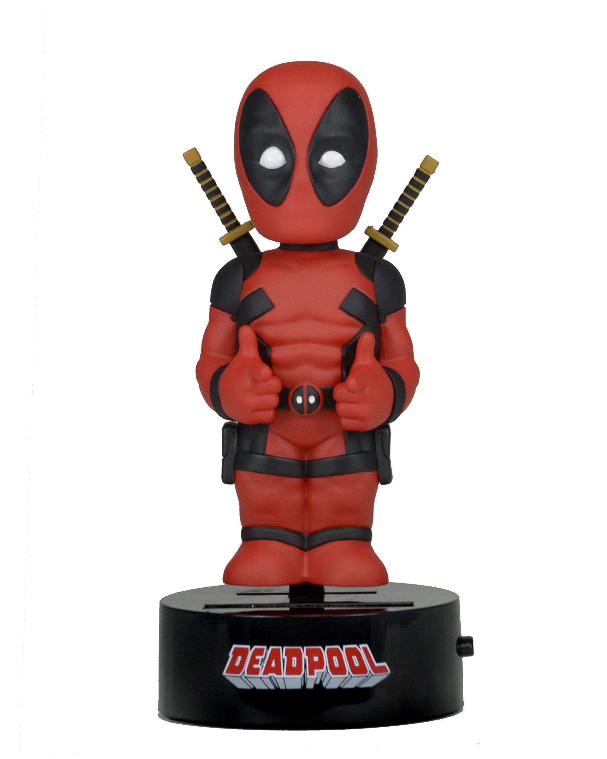 Enjoy hours of body-bobbling fun that's powered by the sun - no batteries needed! From the Marvel comics, Dead pool stands 6" tall and rocks from side to side when exposed to light. Collect the entire line of Body Knockers and watch your favorite characters work it all day long!.
