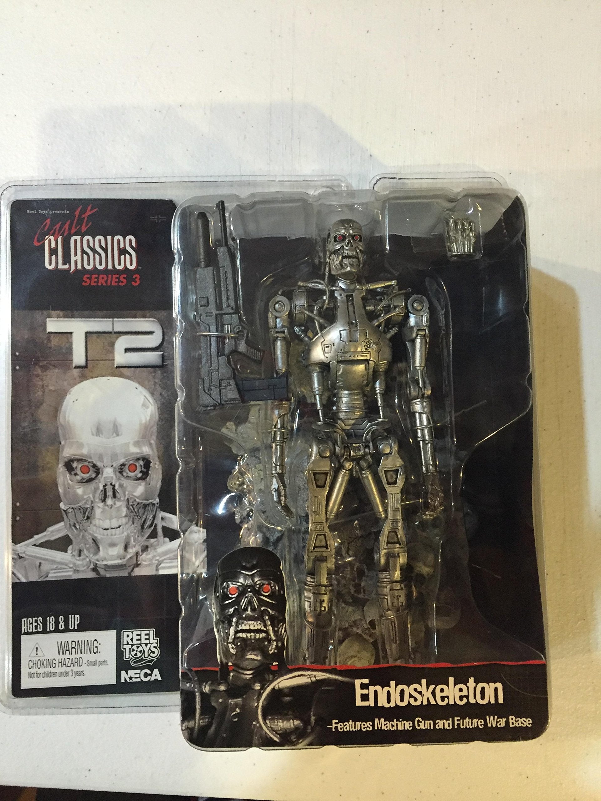 Cult Classics Endoskeleton Action FigureA marvel in modern special effects, the T800 Endoskeleton wowed audiences when it first appeared in the hit Terminator series. Now the original icon is back and more detailed and articulated than ever in Cult Classics Series 3 from NECA. The Endoskeleton is 7 inches tall and fully articulated. Included are a display base, plasma rifle, working pistons and more!