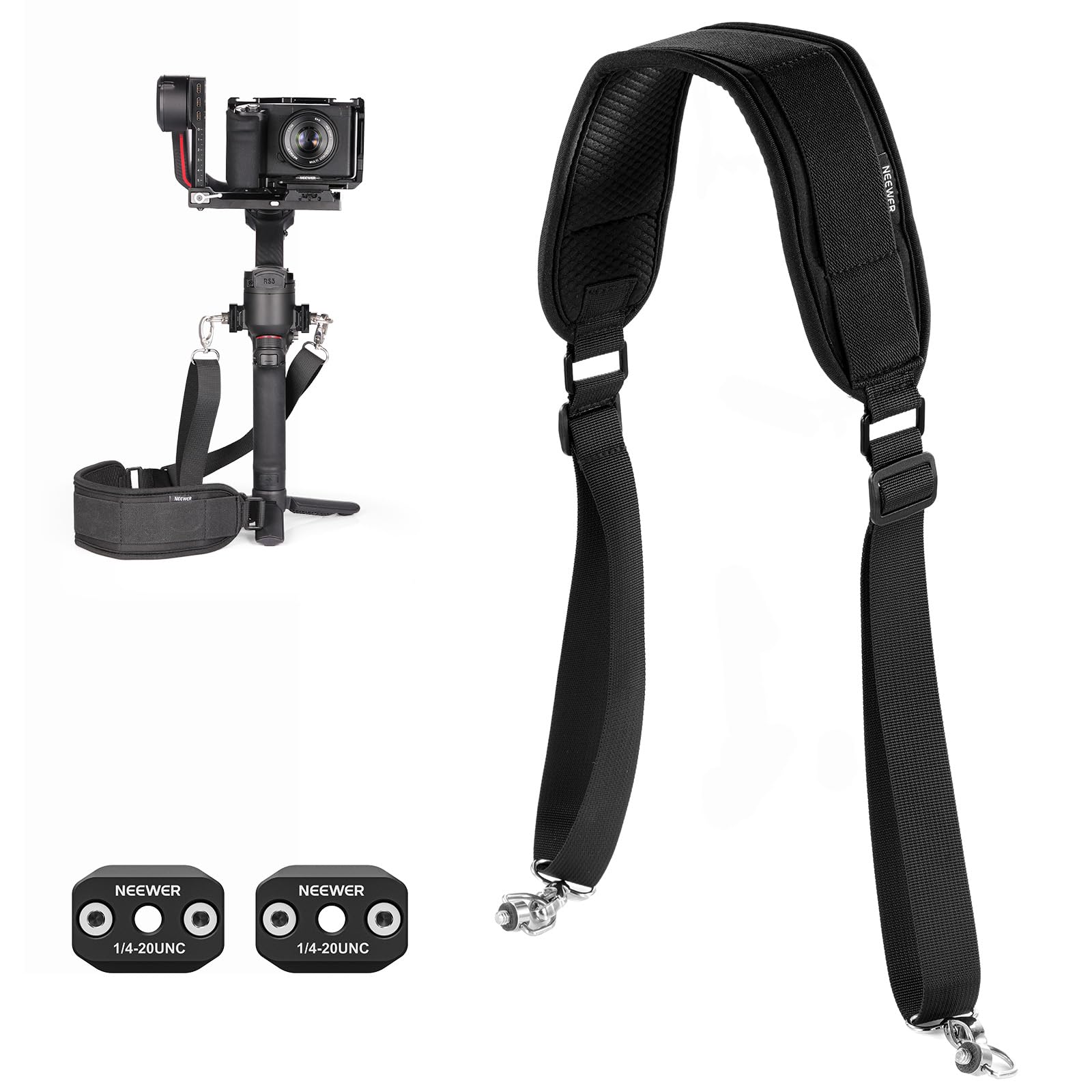 Neewer RS4 RS3 Neck Strap with Two NATO Rails & 1/4" D Rings for DJI RS4 RS4 Pro RS3 Pro RS2 RSC2 Ronin SC Gimbal Stabilizer, 4.9ft/150cm Length Adjustable Weight Reducing Shoulder Strap, GA014