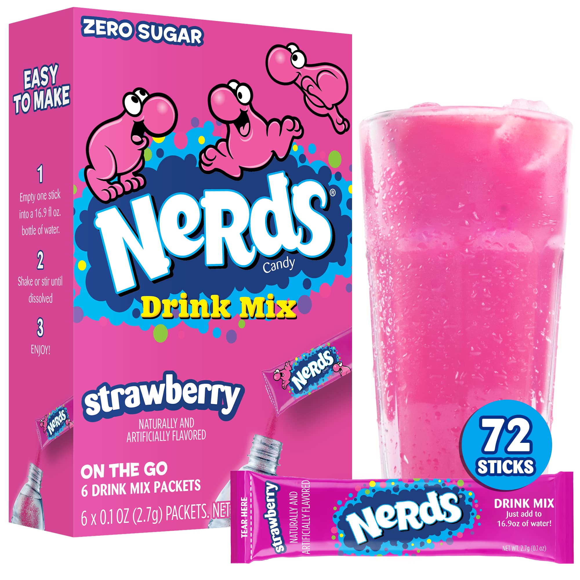 Available in a variety of delicious flavors, Nerds Drink Mix is for consumers looking for a fun way to flavor their water without all of the extra sugar. Easily make your own flavored water at home or on the go with these portable drink mix sticks. To use, mix 1 packet with 16 fl oz of water. Pack in your children’s lunch box to have them be the most popular kid at the lunch table. Nerds drink mixes will have the whole family drinking 8+ glasses of water each day!