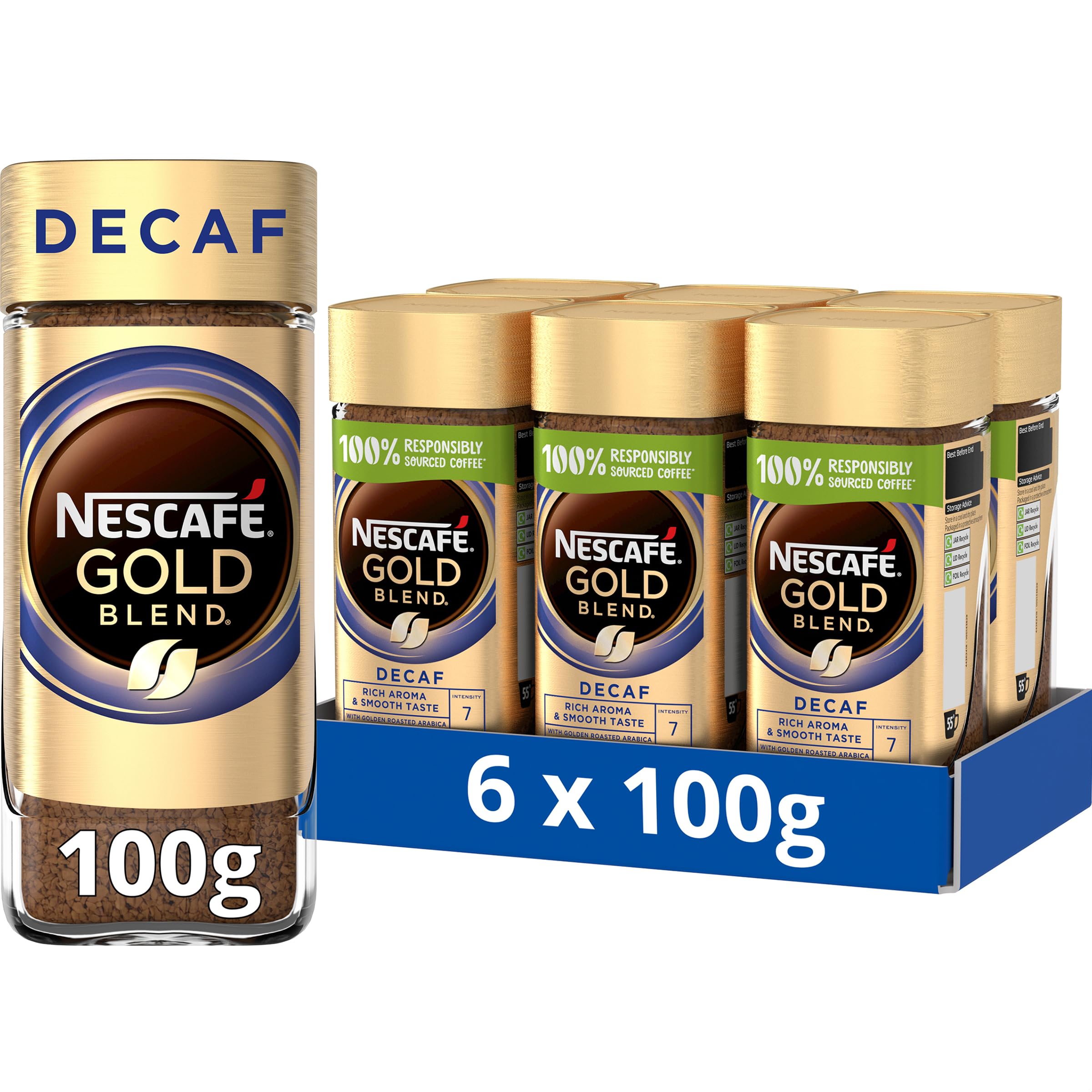 DescriptionProduct DescriptionTake some time to relax with the well-rounded taste and rich aroma of NESCAFÉ GOLD BLEND Decaff. This instant decaff coffee has been decaffeinated purely using water. Directions for Use Add one heaped tsp (1.8 g) into your cup Pour in 200 ml of hot water Relax with your quality coffeeIngredientsDecaffeinated soluble coffee, decaffeinated roast and ground coffee(%).DirectionsOne mug (1.8g + 200ml water)Manufacturer Contact InformationNestlé UK Ltd, 1 City Place, Gatwick, RH6 0PA, United Kingdom