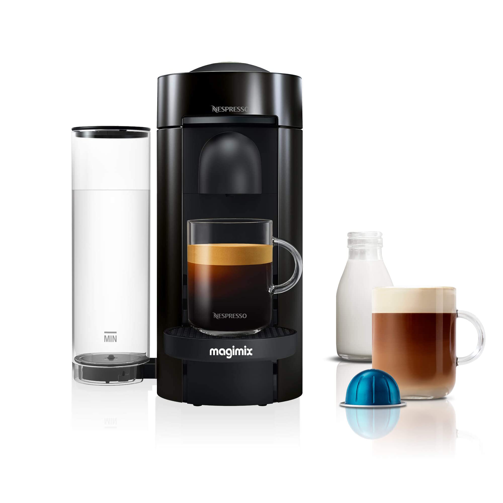 Product DescriptionSimple to use just insert a capsule and close the lever-when activated, the CENTRIFUSION TECHNOLOGY then spins the capsule up to 7, 000 rotations per minute, this process of blending ground Coffee with hot water produced the perfect crema to complement your favourite Coffee or Espresso. The Nespresso VertuoLine ensures you get every drop of flavour from each Nespresso capsule. Offering consistency with every single cup of coffee you make. The new technology AUTOMATIC BLEND RECOGNITION, means that individual capsules are recognized automatically allowing for perfect extraction of every Grand Cru. There's no need to change settings - the one-touch brew feature lets you create exceptional freshly brewed Coffee or authentic Espresso at the touch of a button. Instant enjoyment Each machine includes a welcome set with 12 Large Nespresso VertuoLine capsules containing individual aromas. Nespresso Experts have created these highly aromatic and smooth gourmet blends, individually developed to deliver ultimate quality. The result is 14 incomparable Grand Cru experiences, each carefully balanced and roasted to bring out its unique flavour profile. 3 pin UK plug only English InstructionsBox Contains1 x Magimix 11385