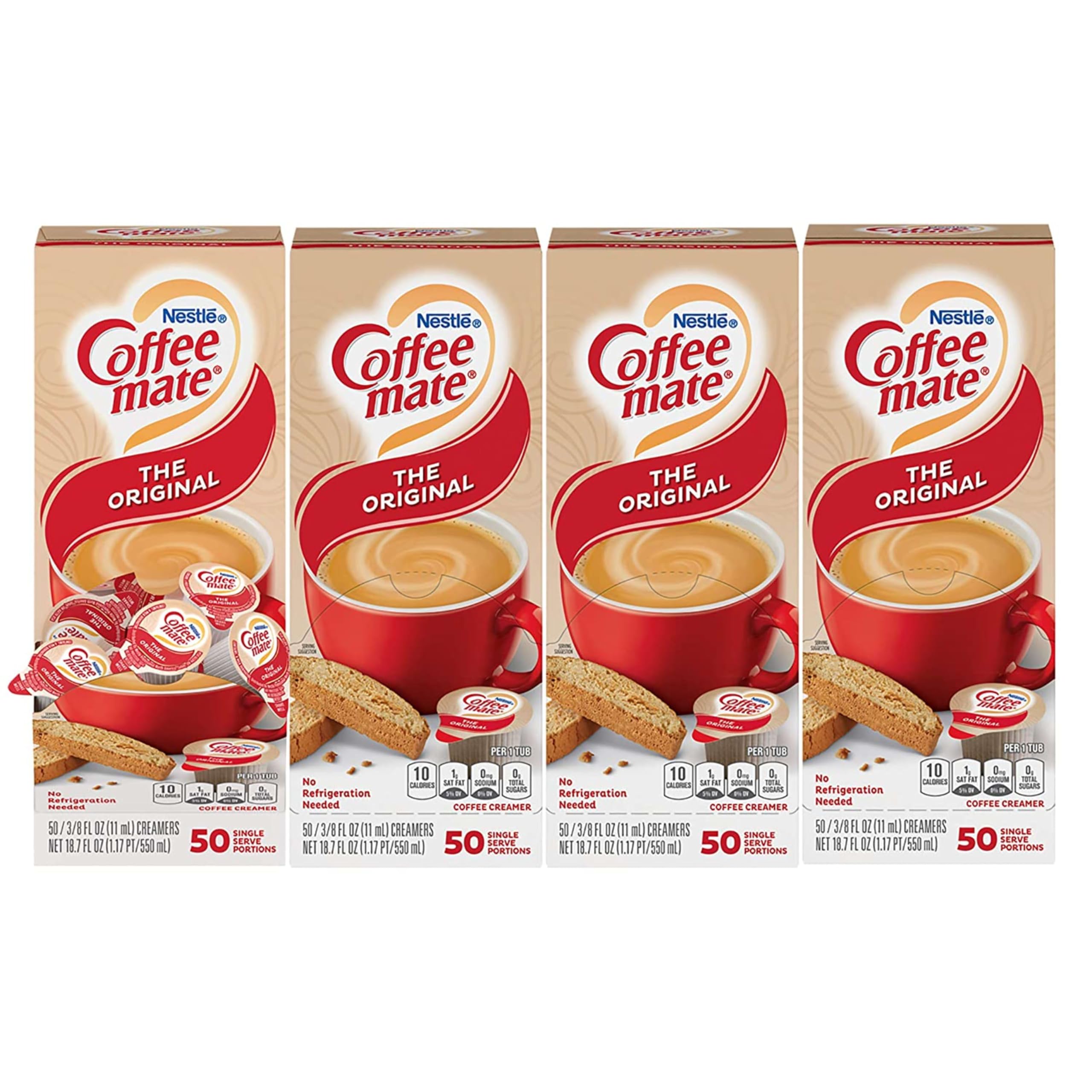 Nestle Coffee mate Original flavored liquid creamer singles are a classic favorite. Within each cup is a deliciously rich, velvety smooth creamer that will enhance and enrich your coffee offering with a touch of differentiation. They are packaged in a convenient dispenser box which keeps the counter clean, organized, and displayed beautifully. These creamer singles don’t need to be refrigerated and can retain their irresistible flavor at room temperature for up to 9 months. Easy to use - shake, open and pour. Non-Dairy + Lactose-Free + Cholesterol-Free + Gluten-Free + Kosher Dairy. Coffee mate is America's #1 coffee creamer. With a variety of flavors and formats, Coffee mate has your coffee creamer needs covered. Delight your employees, customers and guests by offering Coffee mate liquid creamer in your workplace, break room or kitchen.