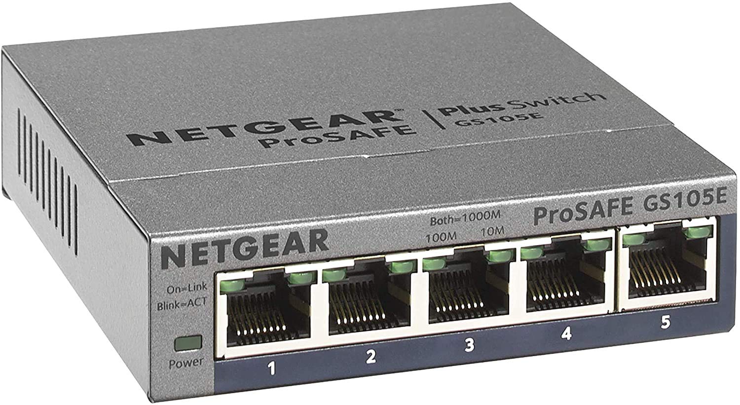 Product DescriptionThe NETGEAR GS105Ev2 Smart Managed Plus Desktop Switch features 5-Port Gigabit Ethernet, ProSAFE Lifetime Protection and more.Box ContainsProSAFE Gigabit Smart SwitchRack-mount kitPower cordQuick Install GuideInstallation CD with Smart Control Center software and user manual