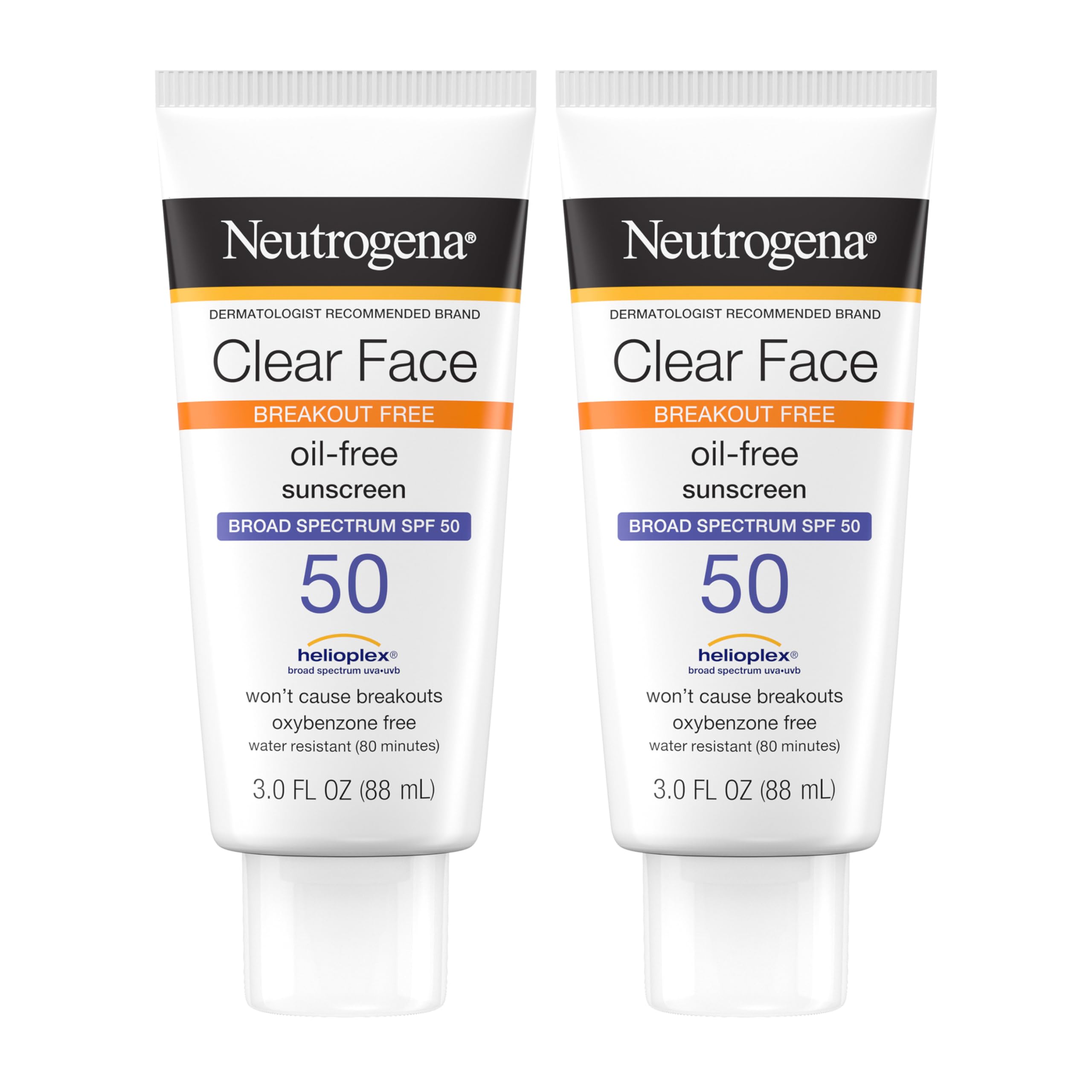 Neutrogena Clear Face Liquid Lotion Sunscreen with Broad Spectrum SPF 50 offers UVA/UVB sun protection that leaves your skin looking healthy and clear. Suitable for face or body, this lightweight sunscreen lotion helps prevent sunburn without causing breakouts on acne-prone skin. The liquid-lotion has a water-light texture that leaves a weightless, matte finish so skin can breathe. Stabilized with Helioplex Technology, the SPF 50 facial sunscreen offers superior broad spectrum protection from skin-aging UVA and skin-burning UVB rays with an oxybenzone-free formula. This dermatologist-tested formula is fragrance free and non-comedogenic, so it won't clog pores or cause breakouts. It is water-resistant up to 80 minutes. Apply prior to sun exposure to keep skin protected during outdoor activities like gardening, biking, hiking, boating or going on a walk.
