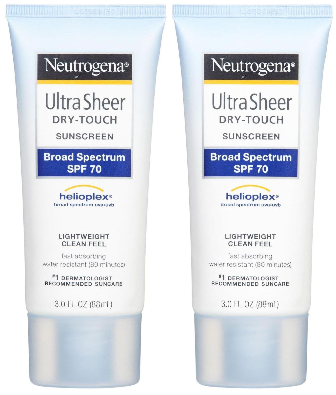 Get powerful sun protection without the heavy finish with Neutrogena Ultra Sheer Dry-Touch Sunscreen. This lightweight Broad Spectrum SPF 70 sunscreen lotion with Dry-Touch technology absorbs fast for a clean, ultra-light feel and non-shiny finish. This sunscreen is formulated with Helioplex Technology, which offers superior broad spectrum protection from aging UVA rays and burning UVB rays. Fast-absorbing, lightweight and water-resistant, this non-greasy sunscreen lotion formula is non-comedogenic and PABA-free. Protect yourself as you get your daily dose of sunshine.