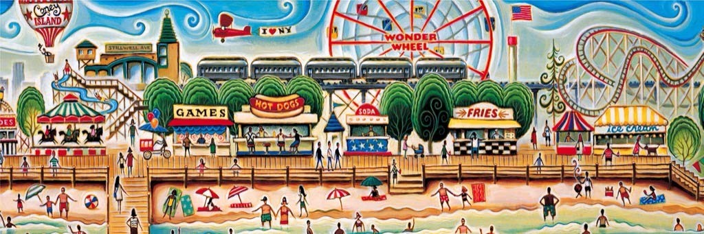 New York Puzzle Company - Transit Posters Coney Island - 1000 Random Cut Jigsaw Puzzle for Adults by Tim Zeltner